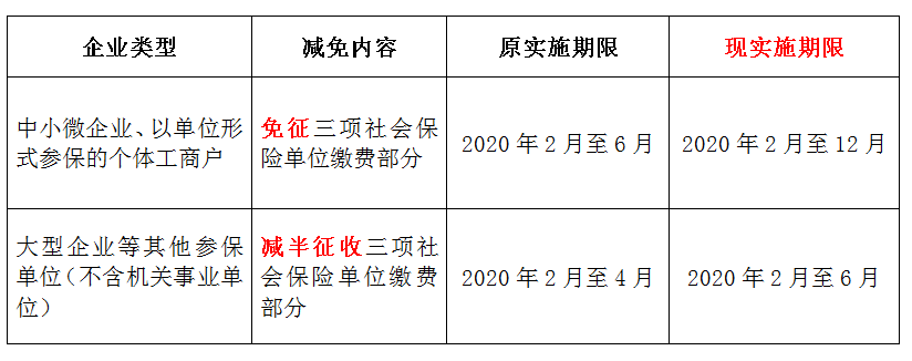 2020年6月22日,人力資源和社會(huì)保障部、財(cái)政部和國(guó)家稅務(wù)總局聯(lián)合印發(fā)《關(guān)于延長(zhǎng)階段性減免企業(yè)社會(huì)保險(xiǎn)費(fèi)政策實(shí)施期限等問(wèn)題的通知》(人社部發(fā)〔2020〕49號(hào))(←點(diǎn)擊查看詳情),明確了延長(zhǎng)階段性減免企業(yè)養(yǎng)老保險(xiǎn)、失業(yè)保險(xiǎn)和工傷保險(xiǎn)(以下簡(jiǎn)稱三項(xiàng)社會(huì)保險(xiǎn))單位繳費(fèi)政策實(shí)施期限。那么,用人單位要如何享受減免政策呢,小編來(lái)仔細(xì)告訴你。 政策規(guī)定 免征中小微企業(yè)、以單位形式參保的個(gè)體工商戶的三項(xiàng)社會(huì)保險(xiǎn)單位繳費(fèi)政策,延長(zhǎng)執(zhí)行至2020年12月;減半征收大型企業(yè)等其他參保單位(不含機(jī)關(guān)事業(yè)單位)三項(xiàng)社會(huì)保險(xiǎn)單位繳費(fèi)政策,延長(zhǎng)執(zhí)行至2020年6月底。