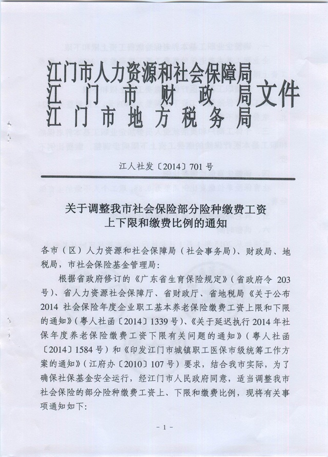 關(guān)于調(diào)整我市社會(huì)保險(xiǎn)部分險(xiǎn)種繳費(fèi)工資上下限和繳費(fèi)比例的通知