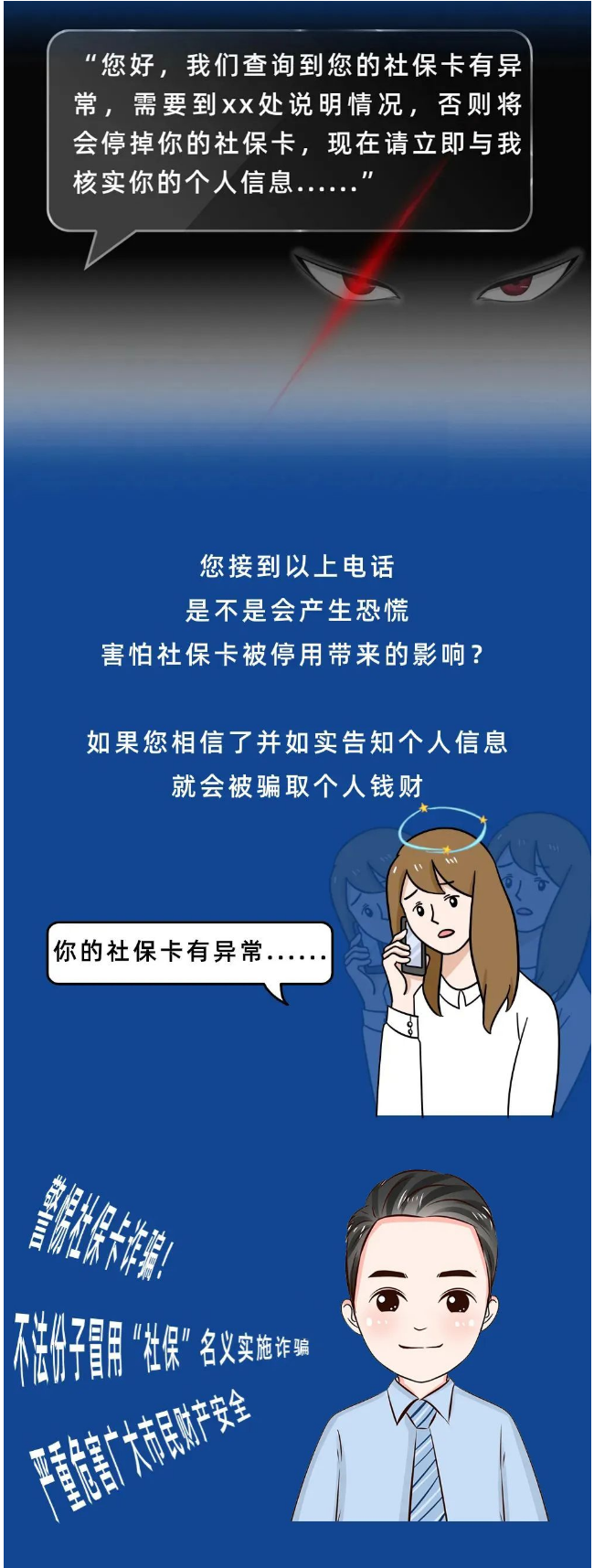 接到假冒社保工作人員的語音電話或者短信,千萬別透露自己的賬戶信息及身份信息,更不能按其提示進行轉賬匯款等操作。
