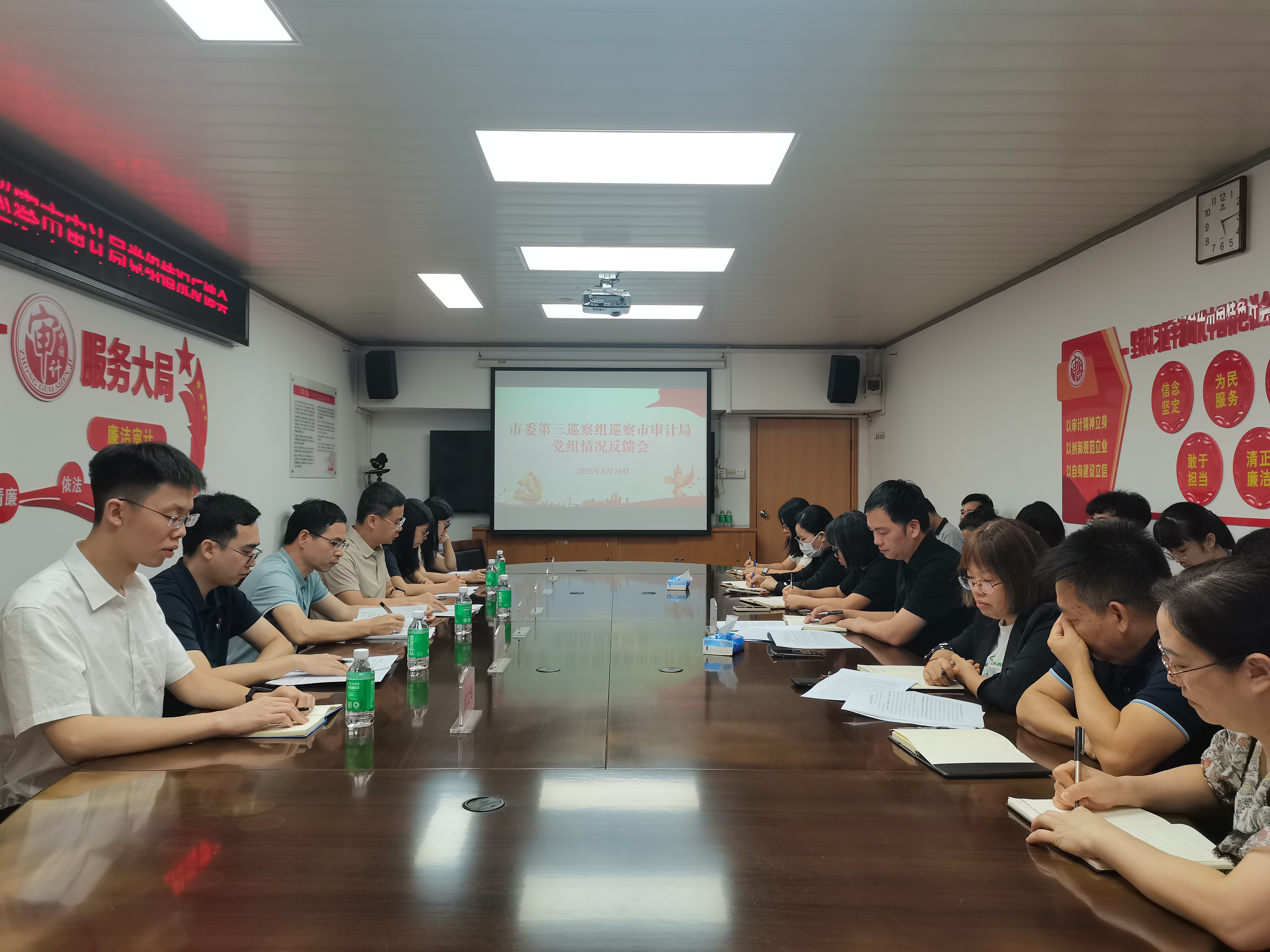 市委第三巡察組副組長,市委巡察辦、市委組織部等有關同志,市審計局領導班子成員出席會議;市審計局中層以上干部列席會議。