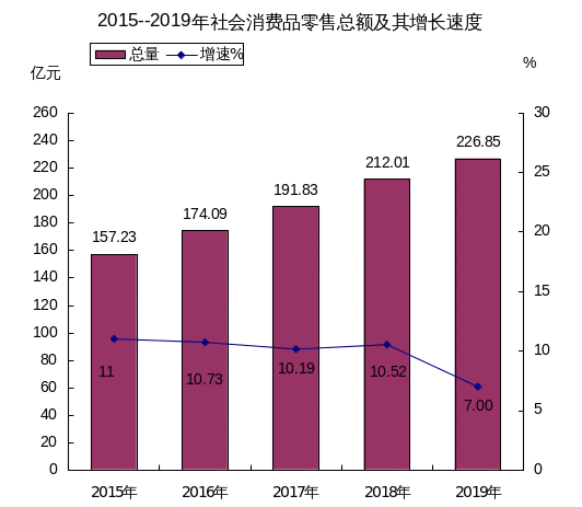 二、農業 全年實現農業總產值65.04億元,比上年增長5.84%。全年糧食作物播種面積63.27萬畝,比上年增長0.16%。其中:水稻種植面積58.18萬畝,比上年下降0.89%。 全年糧食總產量(折糧)21.13萬噸,與上年持平,其中:稻谷19.85萬噸,比上年下降0.90%。 圖2: 全市更新造林面積5.71萬畝,比上年下降26.79%;木材砍伐19.44萬立方米,比上年下降5.81%。 畜牧業肉類總產量9.47萬噸,比上年下降16.86%;全年生豬出欄量60.98萬頭,比上年增長5.94%;家禽出欄量3415.15萬只,比上年增長9.38%;禽蛋全年總產量1.1萬噸,比上年下降0.90%;水產品產量5.3萬噸,比上年增長5.16%。 三、工業和建筑業 2019年,全市規模以上工業企業309家,規模以上工業增加值比上年下降16.20%,工業總產值比上年下降16.03%。工業總產值中,按輕重工分:輕工業下降19.15%,重工業下降11.62%;按企業經濟類型分:外商及港澳臺商投資企業下降5.16%,股份制企業下降27.90%,其他經濟類型下降5.80%。 圖3: 全年規模以上工業企業銷售產值比上年下降17.63%,產品銷售率92.72%,主營業務收入比上年下降19.38%,利潤總額比上年下降7.57%。 全年具有資質等級的總承包和專業承包建筑企業完成總產值191.42億元,比上年增長0.01%。主營業務收入164.13億元,比上年下降7.74%。實現利潤總額4.95億元,比上年增長17.86%。 四、固定資產投資 全年固定資產投資比上年下降7.4%。其中:房地產投資比上年增長80.30%。固定資產投資中,第一產業投資比上年增長18.54%;第二產業投資比上年下降27.18%;第三產業投資比上年增長8.46%。全年民資投資比上年下降5.77%。 全年商品房施工面積494.97萬平方米,比上年增長32.24%;竣工面積32.53萬平方米,比上年增長15.51%;商品房銷售面積87.91萬平方米,比上年增長9.64%;商品房銷售額61.8億元,比上年增長10.82%。 五、交通運輸和郵電業 全年社會客運量3158.8萬人,比上年下降6.67%;客運周轉量64767.3萬人公里,比上年下降16.24%;港口貨物吞吐量458.17萬噸,比上年下降64.12%。 年末市內公路通車里程1609.3公里。汽車保有量12.50萬輛,比上年增長7.52%。摩托車保有量16.39萬輛,比上年下降34.27%。公共汽車擁有量259輛。 年末固定電話用戶10.15萬戶,移動電話用戶79.74萬戶。 六、國內貿易 全年社會消費品零售總額226.85億元,比上年增長7.00%。按行業分,批發和零售業實現零售額202.40億元,比上年增長7.00%;住宿和餐飲業實現零售額24.45億元,比上年增長6.97%。其中:限額以上貿易企業實現零售額43.27億元,比上年下降7.33%。 圖4: 七、對外經濟貿易和旅游業 全年海關進出口總值152.6億元,比上年下降8.6%。外貿出口總值128.8億元,比上年下降4.7%。進口總值23.7億元,比上年下降25.4%。實現對外貿易順差105.1億元。 全年新批設立外商直接投資企業28家,同比增加7家;外商投資增資企業9家次,比去年減少1家次。合同外資金額0.65億美元,比上年增長226.95%。實際吸收外商金額0.51億美元,比上年增長7.56%。外向型企業325家,其中:三資企業311家,來料加工企業14家。 全年旅游業共接待國內外游客865.56萬人次,比上年增長12.88%,其中:國內旅游者737.53萬人次,比上年增長11.96%;國際旅游者128.03萬人次,比上年增長18.46%;實現旅游總收入111.45億元,比上年增長21.11%。全市擁有星級酒店2家,其中:五星級酒店1家,三星級1家。旅游飯店出租率65.65%。 八、財政金融 全年地方公共財政預算收入27.95億元,比上年增長7.17%;地方公共財政預算支出51.16億元,比上年增長29.86%。 年末金融機構存款余額661.83億元,比上年增長9.01%。其中:城鄉居民儲蓄存款余額470.98億元,比上年增長9.13%。各項貸款余額402.58億元,比上年增長16.37%。僑匯收入0.26億美元,比上年下降27.22%。 九、科學技術和教育 全年專利申請量2460件,專利授權量1713件。國家級高新技術企業132家。全市工程技術研究中心省級有49家、地市級有184家。全市擁有各類專業技術人員2.85萬人。 年末全市有中小學91所,其中完(高、職)中10所,初中19所,小學58所,九年一貫制學校4所,全市在校生共124043人,其中小學生55337人,初中生23992人,高中階段在校生19516人。特殊學校1所,在校生135人。開放大學1所,在校本科生285人,大專學生848人。幼兒園100所,在園兒童25063人。小學適齡兒童入學率100%,小學畢業生入學率100%,非正常流動率為0%;15周歲人口初等教育完成率100%,與上年持平;17周歲人口中等教育完成率99.78%,比上年提高0.02個百分點。初中入學率100%,與上年持平;非正常流動率0.51%,比上年提高0.03個百分點。三類殘疾兒童少年入學率100%,與上年持平。“普九”五率連續30年達到國家和省規定的標準要求。全市初中畢業生7714人,升學率為99.52%,比上年下降0.48個百分點,完成江門市下達的“普高”指標。全市參加高考人數5765人,入圍人數5404人,其中本科入圍人數3137人;報考入圍率達93.73%,其中本科入圍率達54.41%。全年投入3318.4萬元,新建、擴建、改建校舍1.43萬平方米。 十、文化、衛生和體育 年末全市有文化館1間;文化站15個,村文化室269個;博物館1間;美術館1間;圖書館21間,圖書總藏書量186萬冊,其中:鎮圖書館藏書量37萬冊;市(鎮)影劇院6座。廣播電視臺1間,有線電視轉播頻道154個,廣播電臺播出頻道1個。 年末擁有衛生機構25個。其中:醫院6家,衛生院14家;婦幼保健院1家;專科防治所、站2家;疾病預防控制中心1個;衛生監督所1家。病床床位2901張,其中:醫院2415張,衛生院336張。衛生技術人員3292人,其中:醫生1096人,衛生
