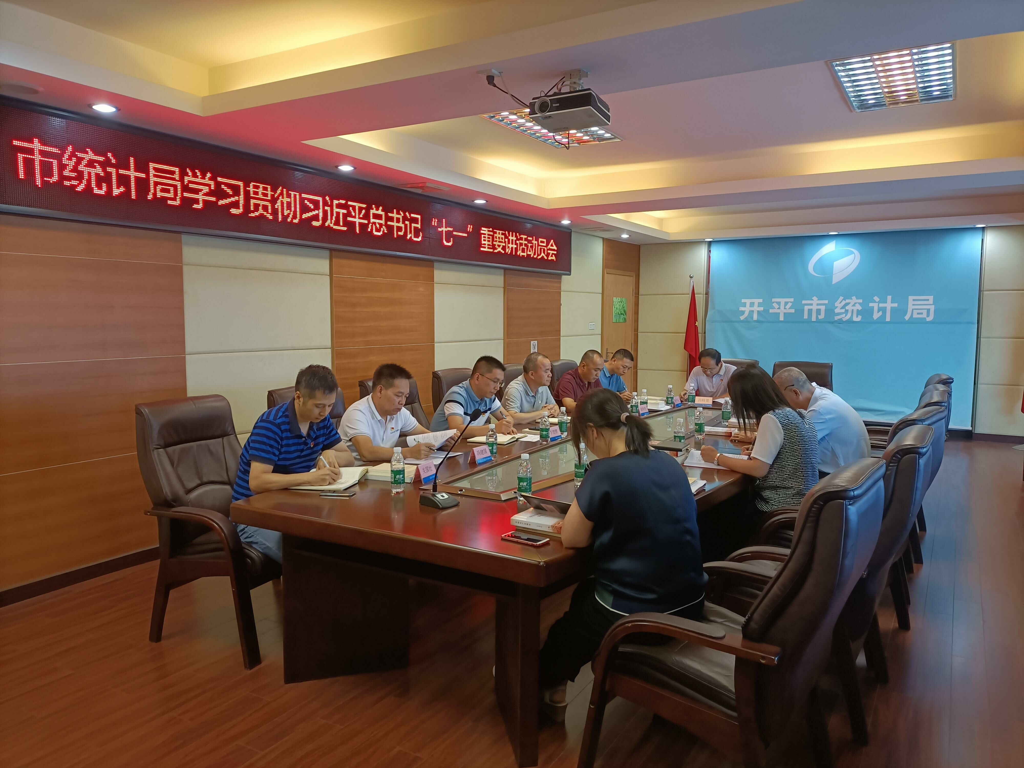 市統計局召開學習貫徹習近平總書記“七一”重要講話動員會 7月9日,市統計局召開學習貫徹習近平總書記“七一”重要講話動員會,傳達學習習近平總書記在慶祝中國共產黨成立100周年大會上的重要講話精神,以及全省、江門、開平市干部動員大會精神,動員全局上下深入學習貫徹習近平總書記“七一”重要講話精神,切實把思想和行動統一到習近平總書記重要講話精神上來,不忘初心、牢記使命,堅定理想信念,踐行黨的宗旨,加快推進統計現代化改革,為推進全市經濟社會發展貢獻統計智慧和力量。局全體黨員同志參加會議。市委黨史學習教育第五巡回指導組列席會議。 局黨組書記、局長李健鵬同志作動員講話時指出,習近平總書記在慶祝中國共產黨成立100周年大會上的重要講話,深情回顧中國共產黨百年奮斗的光輝歷程,高度評價一百年來中國共產黨團結帶領中國人民創造的偉大成就,莊嚴宣告實現了第一個百年奮斗目標、在中華大地上全面建成了小康社會,精辟概括了偉大建黨精神,全面總結以史為鑒、開創未來的“九個必須”,號召全體中國共產黨黨員在新的趕考之路上努力為黨和人民爭取更大光榮,體現了深遠的戰略思維、強烈的歷史擔當、真摯的為民情懷,是一篇馬克思主義的綱領性文獻,為全黨全國各族人民向第二個百年奮斗目標邁進指明了前進方向、提供了根本遵循。 就學習貫徹好習近平總書記“七一”重要講話精神,李健鵬同志強調兩方面意見。 一方面,提高政治站位,深入領會習近平總書記“七一”重要講話的重大意義。習近平總書記“七一”重要講話,具有重要的政治意義、歷史意義、時代意義和現實意義,為奮進新時代、走好新征程進一步指明了前進方向、提供了根本遵循。我們要深刻把握總書記“七一”重要講話的重大意義,深入領會全面建成小康社會的歷史性成就,深入領會黨團結帶領人民不懈奮斗的光輝歷程和偉大成就,深入領會偉大建黨精神的深刻內涵和時代價值,深入領會以史為鑒、開創未來的根本要求,深入領會總書記代表黨中央發出的偉大號召,切實把思想和行動統一到總書記“七一”重要講話精神上來。 另一方面,做好部署安排,確保推動學習貫徹取得實實在在成效。一是抓好學習培訓,堅持個人學習和集體學習相結合,通過黨組帶頭學、領導解讀輔導學、全面動員廣泛學、支部牽頭深入學、黨員干部交流學、結合實際務實學等形式,強調精讀深研、學深悟透,做到入心入腦、真學真用,切實把思想和行動統一到習近平總書記重要講話精神上來;二是增強政治自覺,將學習貫徹習近平總書記“七一”重要講話同學習“四史”結合起來,同黨史學習教育結合起來,扎實開展好“我為群眾辦實事”實踐活動,推動黨史學習教育往深里走、往實里走;三是堅持知行合一,結合統計中心工作,聚力推動發展,強化工作落實,緊密聯系工作實際,用講話精神指導工作實踐,引導全局干部職工持續深入學習貫徹習近平總書記重要講話精神,不斷把學習成果轉化為干事創業的強大動力,立足崗位做貢獻,奮力譜寫統計工作新篇章。