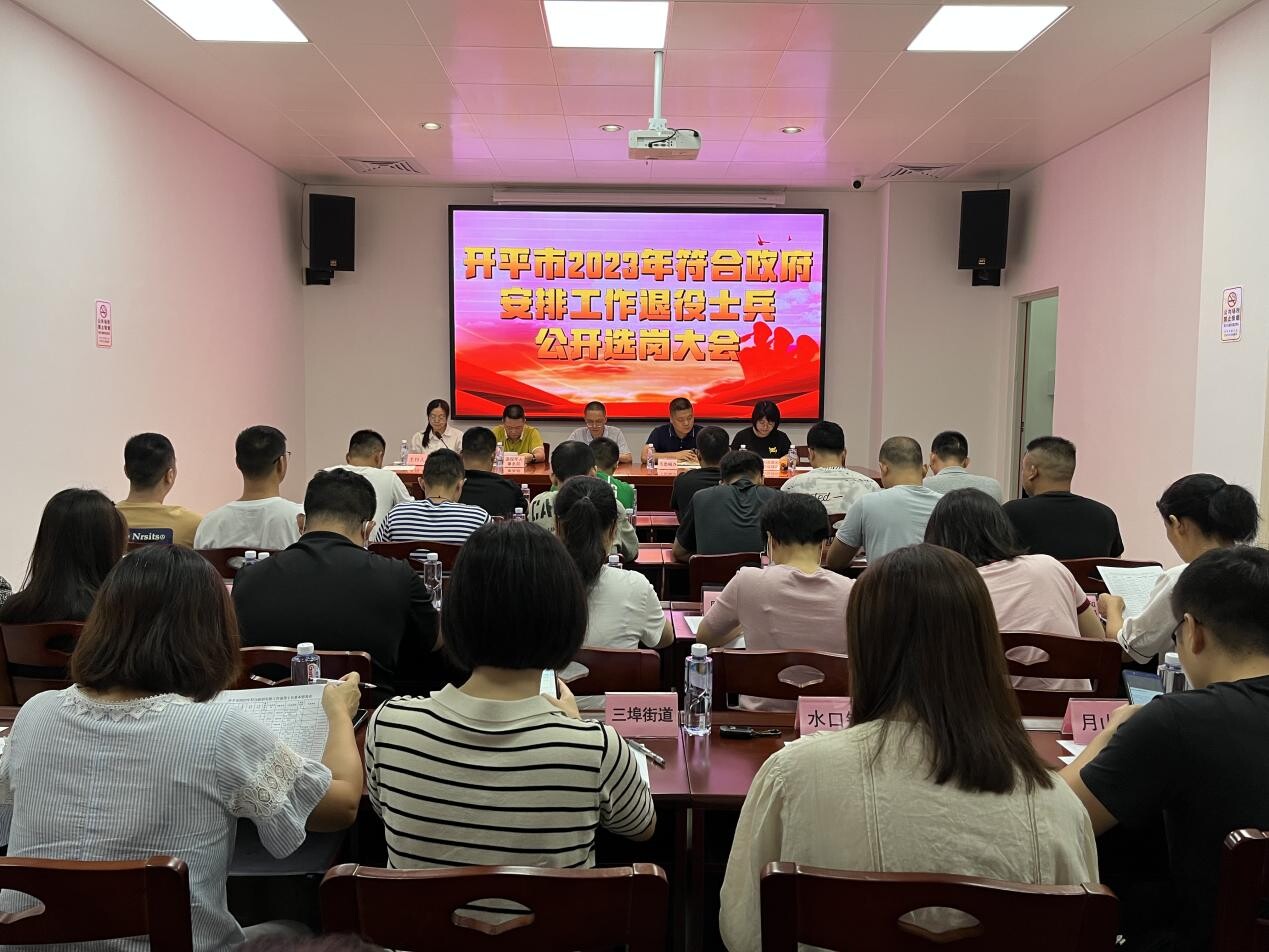8月10日,開平市組織開展2023年符合政府安排工作條件退役士兵公開選崗大會。市紀委監委、市委編辦、市人社局、市退役軍人事務局等單位相關負責同志以及符合政府安排工作退役士兵參加會議。