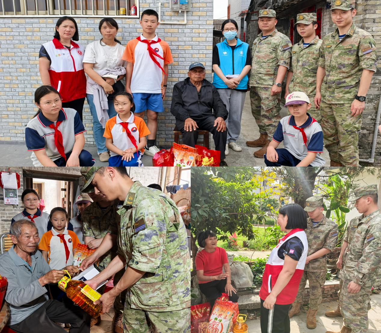 最后,部隊官兵帶著精心準備的慰問品,走進孤寡老人家中。他們親切地陪老人聊天,仔細詢問老人的身體狀況和生活需求。貼心的關懷讓老人們感受到了部隊和社會的關愛,臉上洋溢著幸福的笑容。而學生們也在付出中學會了關愛他人、尊重長輩。周爺爺感動得熱淚盈眶:“感謝你們一直惦記著我們,讓我們心里特別溫暖。”