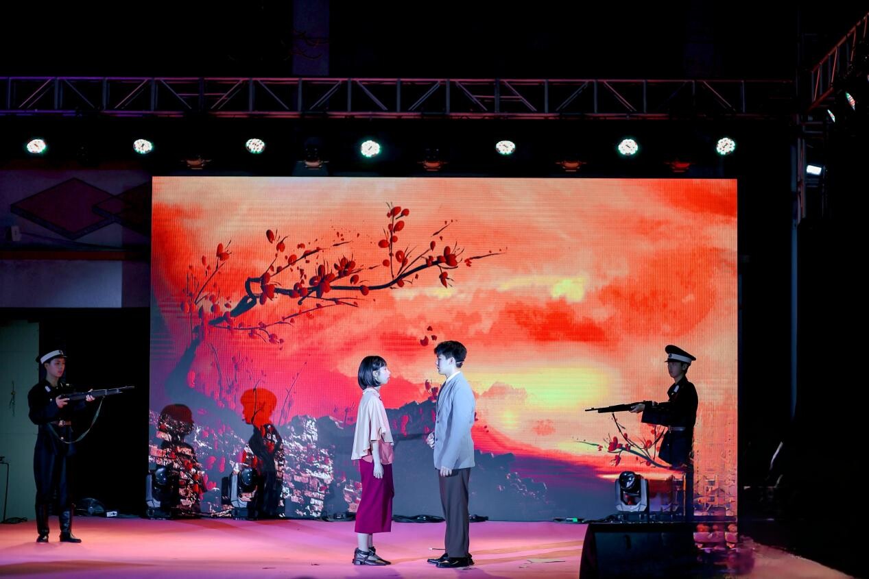 開平市百合中學學生們以演促學,在演繹話劇《木棉花開》