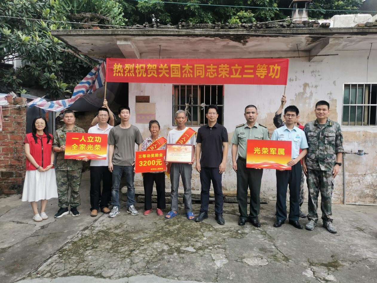 由百合鎮黨委、政府主要領導,開平市退役軍人事務局、開平市人武部分管領導組成慰問組為百合鎮榮獲“三等功”的現役軍人家屬送上立功喜報,傳達黨和政府對他們的深切關懷,把榮譽與關心送到軍人家中,營造“一人參軍、全家光榮,一人立功、家鄉光榮”的良好社會氛圍。