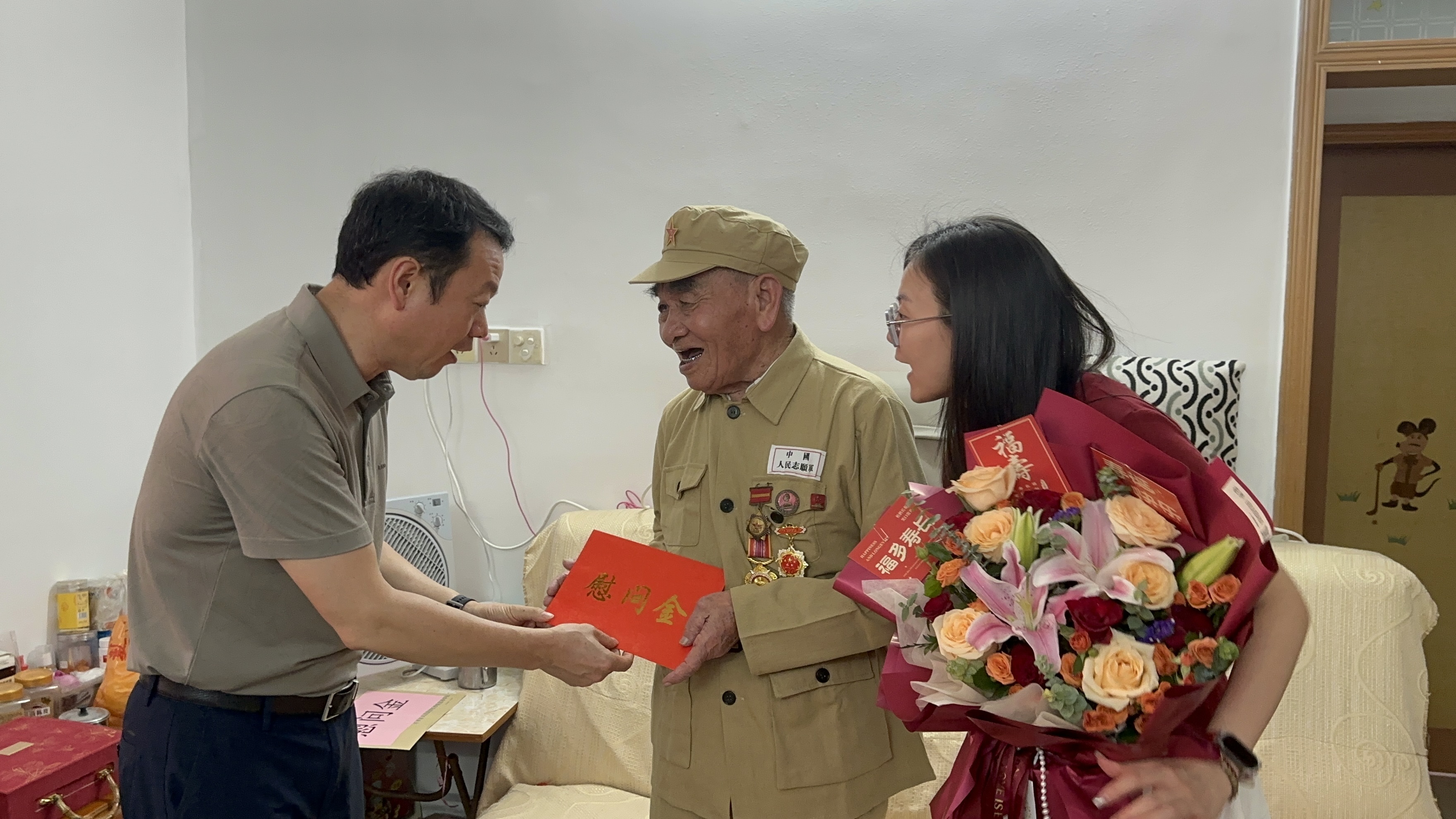 臨別前,張澤康將慰問金交到老人手中:“譚伯,這是黨和政府的一點心意。以后我們常來看您,您的故事,我們要講給更多人聽。”開平市愛國擁軍促進會黨支部書記譚振勝補充道:“有機會找個時間,我們還要來聽您講戰斗故事,今天的幸福日子不是天上掉下來的。”