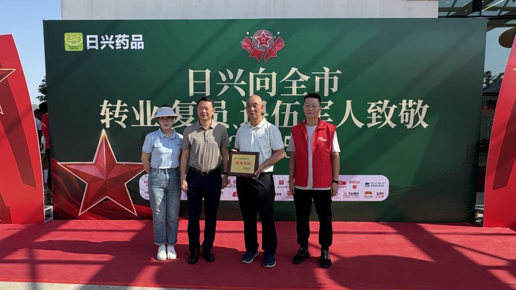 活動現(xiàn)場,為特別表彰日興藥品長期以來對退役軍人事業(yè)發(fā)展傾注的深厚情誼和鼎力支持,開平市退役軍人事務(wù)局局長張澤康特為其授予“尊戎先鋒”榮譽牌匾。日興藥品董事長勞壽榮先生代表企業(yè)鄭重接過牌匾,他表示:“退役軍人是國家的寶貴財富,能為守護他們的健康盡一份心、出一份力,是企業(yè)回饋社會應(yīng)有的擔當。日興藥品將持續(xù)關(guān)注退役軍人需求,用實際行動踐行尊崇與關(guān)愛。”