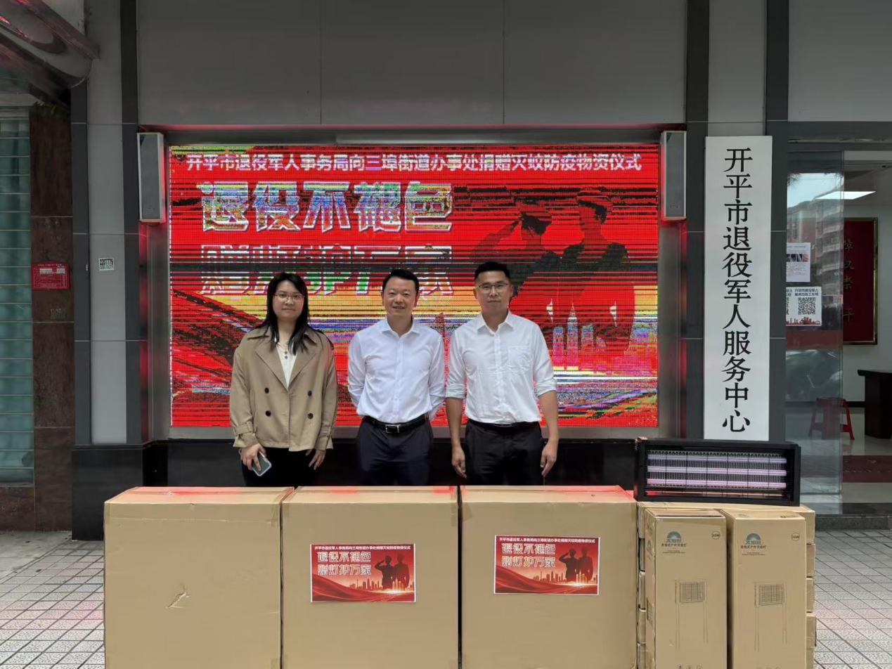 “退役不褪色,贈燈護萬家”,為有效防范基孔肯雅熱風險,10月28日和11月3日,開平市退役軍人事務局聚焦疫情防控需求,向三埠街道、長沙街道、水口鎮、蒼城鎮和百合鎮捐贈一批防疫物資,以實際行動助力重點區域防控工作。