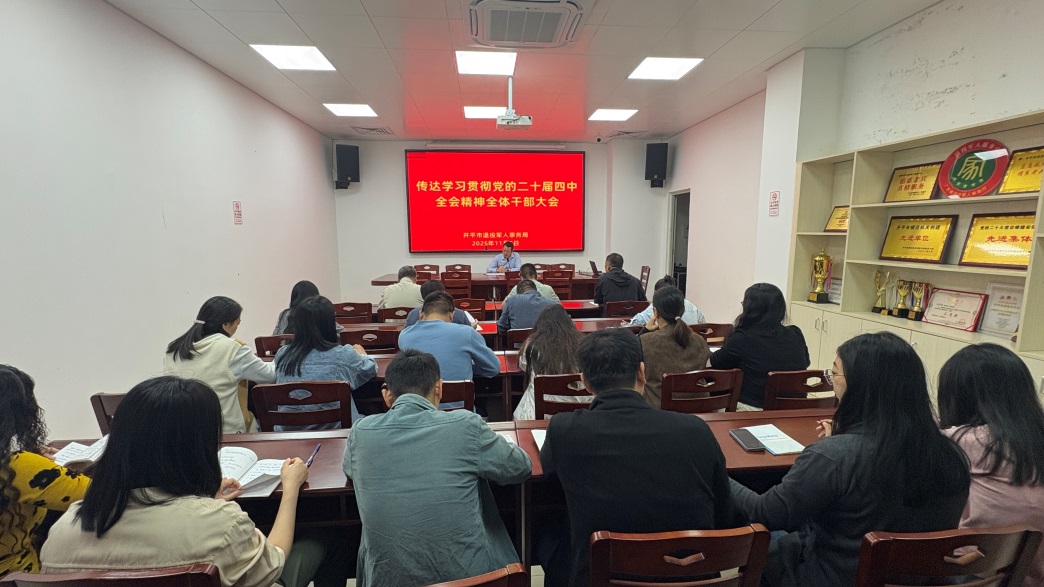 張澤康同志強調,黨的二十屆四中全會是在向第二個百年奮斗目標進軍的新征程上舉行的一次十分重要的會議。全體干部職工要全面學習、認真領會,深刻把握黨的二十屆四中全會精神的豐富內涵和核心要義,把思想和行動統一到全會精神上來,增強貫徹落實的自覺性和堅定性。一是強化思想政治引領。結合學習貫徹黨的二十大、二十屆四中全會精神,通過舉辦專題講座、座談會、紅色故事會等形式加強理論宣講,引導系統黨員、干部和廣大退役軍人堅定信心、振奮精神,發揮作用、干出成績。全面加強退役軍人教育管理,持續開展退役軍人先進典型學習宣傳活動。深入挖掘退役軍人在就業創業、志愿服務、基層治理等方面的先進典型事跡,通過電視、報紙、網絡等媒體進行廣泛宣傳,引導退役軍人永葆本色。二是加強就業服務。結合“十五五”時期經濟社會發展的戰略部署,根據市場需求和退役軍人意愿,針對性開展退役軍人職業技能培訓,優化培訓專業設置,提高培訓的針對性和實用性。摸清退役軍人就業底數和就業需求,持續開展自主就業退役士兵的專場招聘會和就業創業扶持工作,為退役軍人送政策、送崗位、送服務。鼓勵支持退伍軍人投身基層管理、應急搶險、志愿服務等一線工作,推動他們在粵港澳大灣區建設、“百千萬工程”、綠美廣東生態建設等領域實現價值、貢獻力量。三是強化服務保障體系建設。大力推進“四如”服務體系建設。進一步加強鄉鎮、村(社區)退役軍人服務站建設,完善服務設施設備,提升服務能力和水平。定期組織全市退役軍人系統工作人員政策業務培訓,提高工作人員的綜合素質和服務水平,確保三級服務保障體系能夠高效運行。