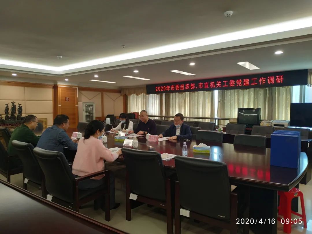 4月16日上午,市委組織部、市直機關工委聯合組成調研組到市文廣旅體局開展黨建工作調研。市文廣旅體局黨組書記、局長譚意軍,負責黨建工作同志等參加黨建調研工作。