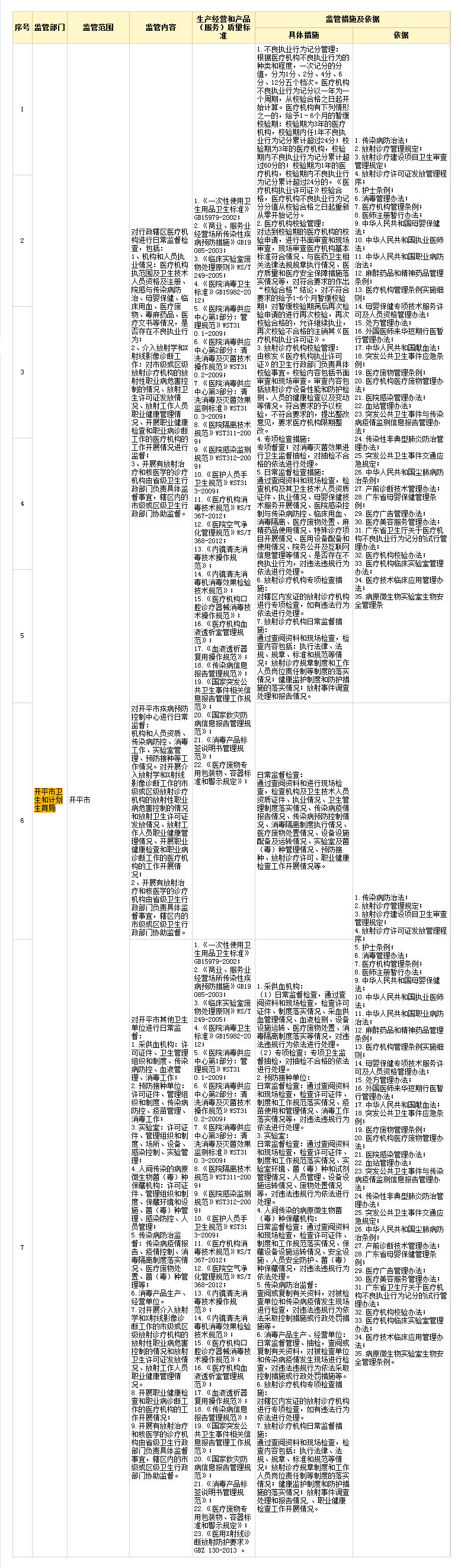 開平市衛(wèi)生和計劃生育局 監(jiān)管清單