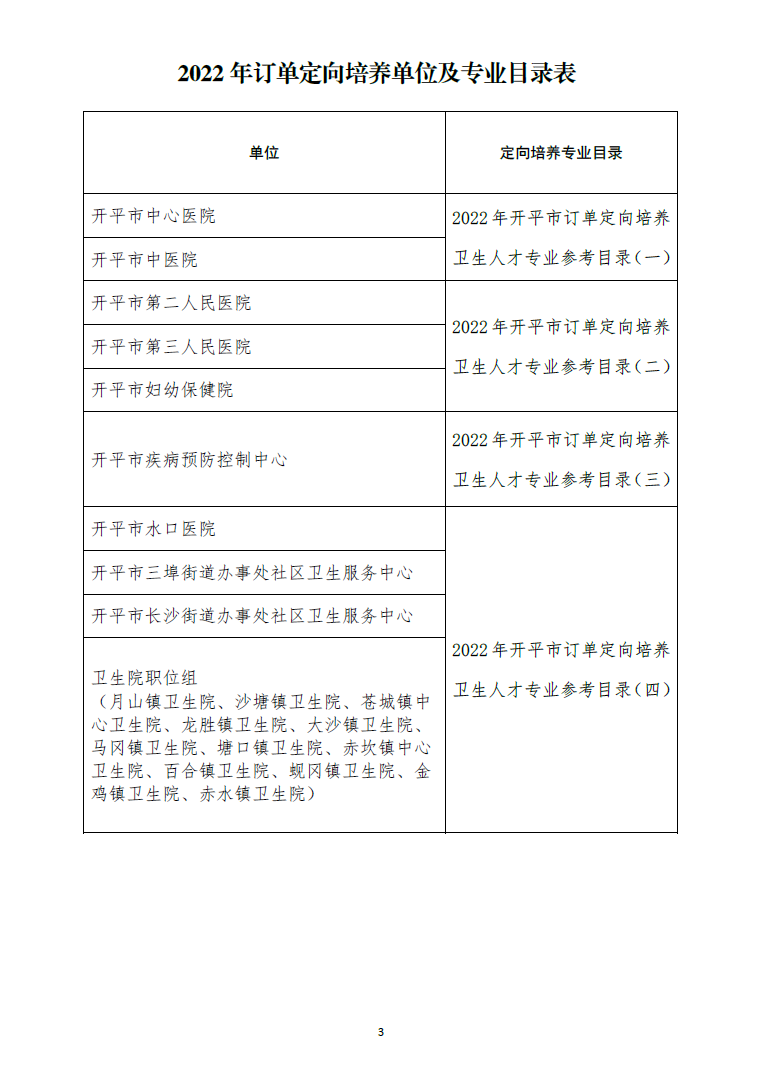 2022年開平市訂單定向培養衛生人才計劃報名公示