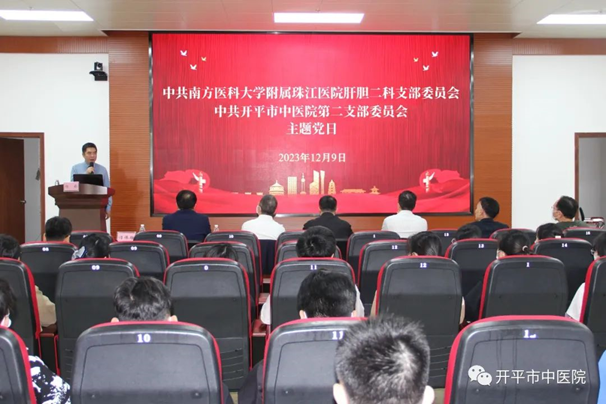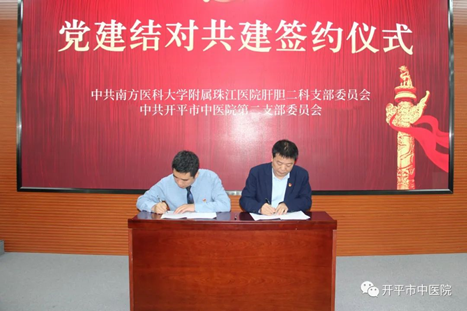 為搭建黨支部交流平臺,不斷加強基層黨支部建設,12月9日,南方醫科大學附屬珠江醫院肝膽二科黨支部與開平市中醫院第二黨支部舉辦黨建結對共建儀式,并舉行肝膽疾病診斷與治療培訓班。開平市衛生健康局黨組成員、副局長蘇黎明,開平市中醫院黨委委員、副院長陳緣超,副院長余健成出席活動并作講話。活動在開平市中醫院九樓多功能廳舉行,由開平市中醫院第二黨支部書記楊崧主持。