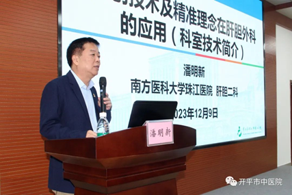 ▲潘明新教授作《微創技術及精準理念在肝膽外科中的應用》專題講座