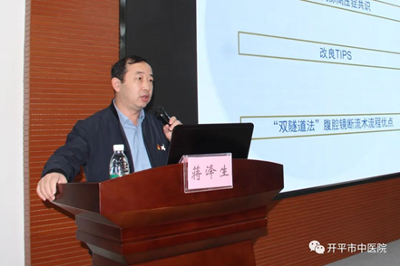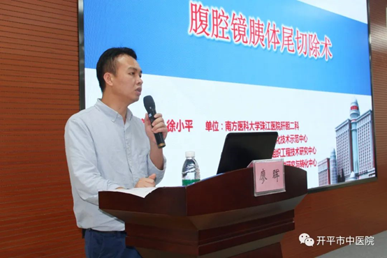 ▲廖暉教授作《腹腔鏡胰腺外科手術》專題講座