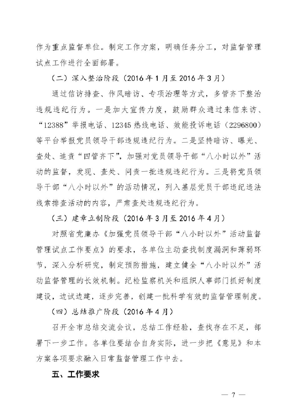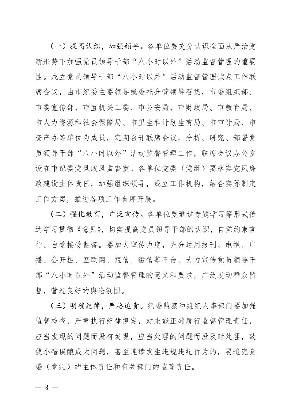 【工作文件】關(guān)于開(kāi)展黨員領(lǐng)導(dǎo)干部“八小時(shí)以外”監(jiān)督管理試點(diǎn)的通知(江黨廉辦函〔2015〕3號(hào))