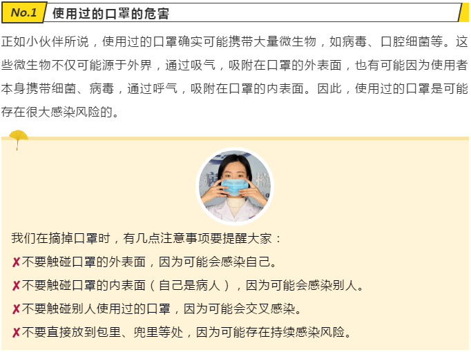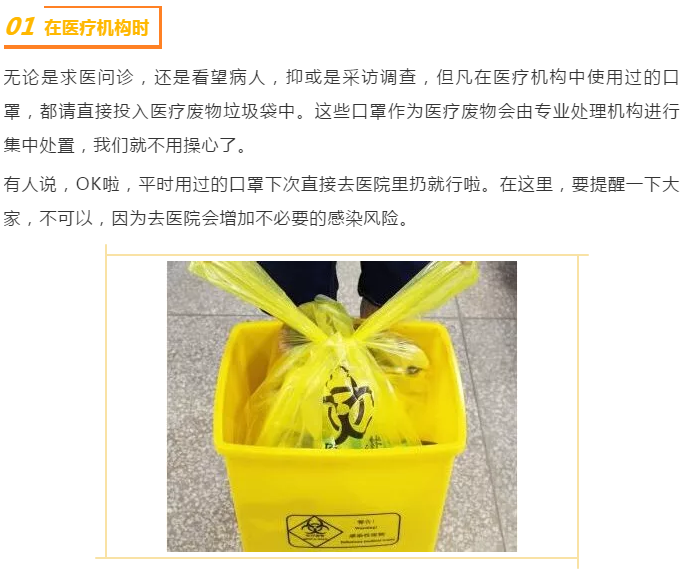 關于新型冠狀病毒感染的肺炎,想知道的看過來(七)最近兩天,不斷有小伙伴問“用過的口罩,沾滿了細菌、病毒,建議不要隨意丟棄”,甚至擔心被別有用心的回收利用,并給出了解決辦法“拿開水燙一下、定點焚燒、剪碎了再扔”。(來源:微信公眾號“上海疾控”。編輯:袁子藝)