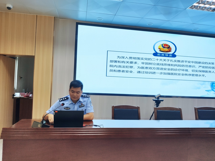 為了全面深入地貫徹落實黨的二十大關于積極推進平安中國建設的戰略部署及相關指示要求,進一步加強平安醫院建設,10月23日上午,開平市衛生健康局聯合開平市公安局召開了2024年開平市醫院安保力量業務技能培訓會。治安大隊、二級及以上醫療機構和醫療機構所在轄區的派出所相關負責同志共30多人參加了會議。 會上,治安大隊通報我省以及我市平安醫院建設方面所取得的進展與面臨的挑戰,并通過組織觀看醫院最小應急單元現場應急處置教學視頻和學習加強醫院安全秩序管理及應急處置等相關文件精神、工作要求等培訓方式,增強各醫療機構風險防范意識,提高醫院安全秩序管理的專業能力與實戰水平。 市衛生健康局副局長蘇黎明,在會上全面剖析了當前醫院安全領域存在的隱患及其整改成效,并就我市平安醫院建設工作提出五點要求:一是提高思想認識,主要負責同志要牽頭抓總;二是強化警醫聯動機制,打造快速應急處突體系;三是構建全方位安防體系,嚴格落實安檢制度及加強保衛服務建設;四是完善矛盾糾紛治理機制,完善醫院投訴管理制度,切實化解醫患糾紛;五是加強醫務人員職業道德培訓,提升醫療服務滿意度。 此次會議全面部署了平安醫院建設工作。通過會議學習進一步提升應急處置能力,有效防范處置涉個人極端、涉暴恐等突發案事件,確保能夠在第一時間做出妥善反應。共同營造醫患雙方安全的診療環境,為廣大醫護人員和患者營造一個安全、穩定、和諧的醫療環境。