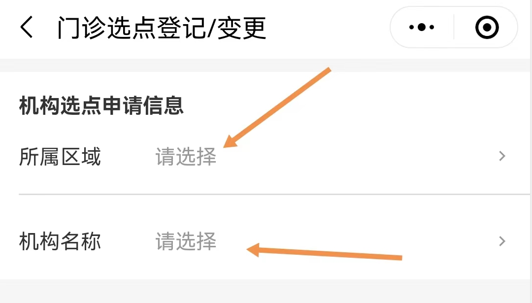 八、先選擇“所屬區域”,再選擇“機構名稱”。