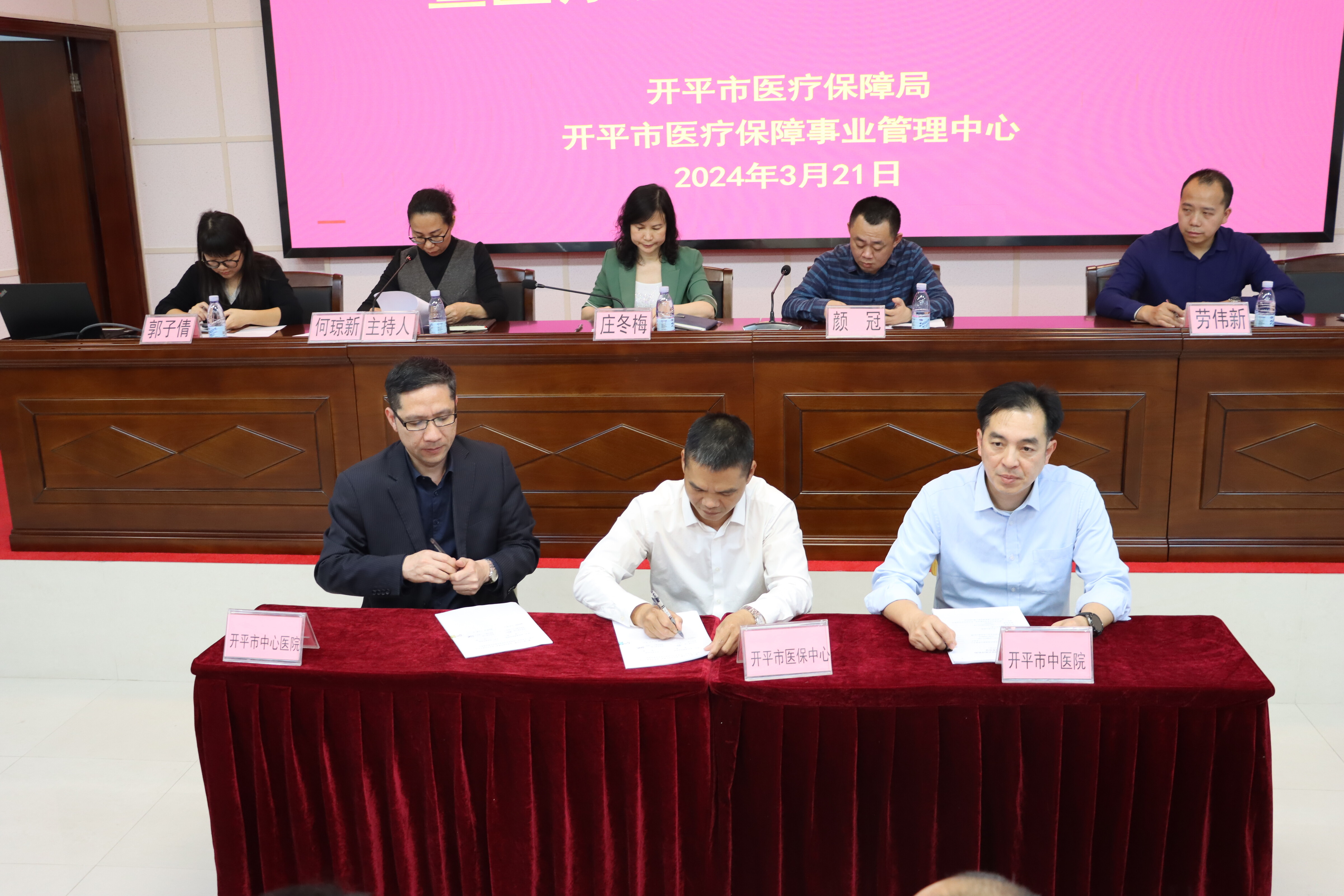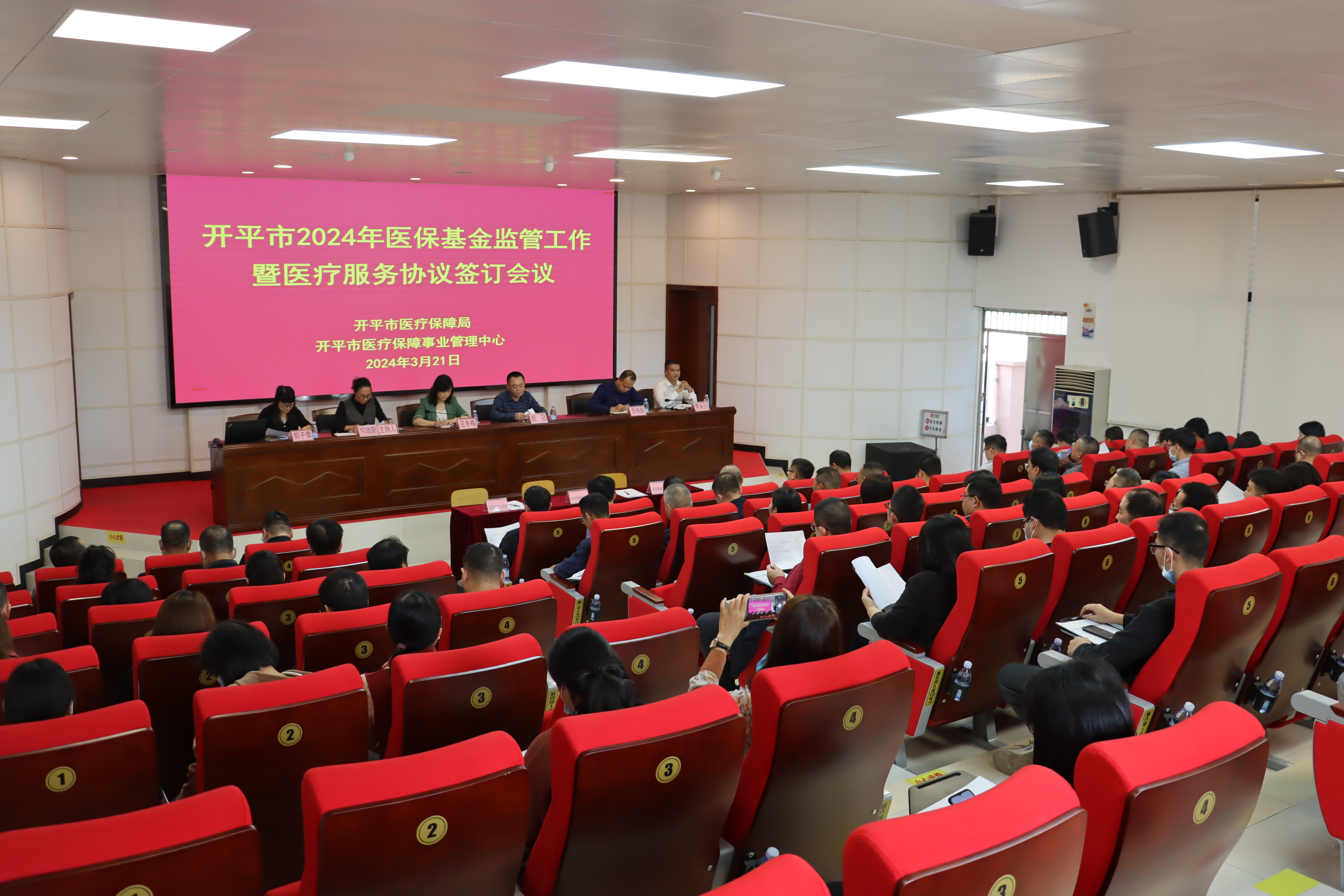 為進一步規范定點醫療機構醫療服務行為,保障參保人員合法權益,維護我市醫保基金安全運行,3月21日下午,開平市醫療保障局組織召開2024年醫保基金監管工作暨醫療服務簽訂會議。市醫保局領導班子成員、衛健局分管領導、各定點醫療機構有關領導及工作人員共90余人參加了會議。會議對我市2023年度醫保基金監管情況進行總結,通報表揚2023年開平市醫保工作先進單位和個人,以及我市2023年度基本醫療保險和生育保險等級考評情況,并與中心醫院、中醫院法人現場簽訂《2024年定點醫療機構服務協議》。