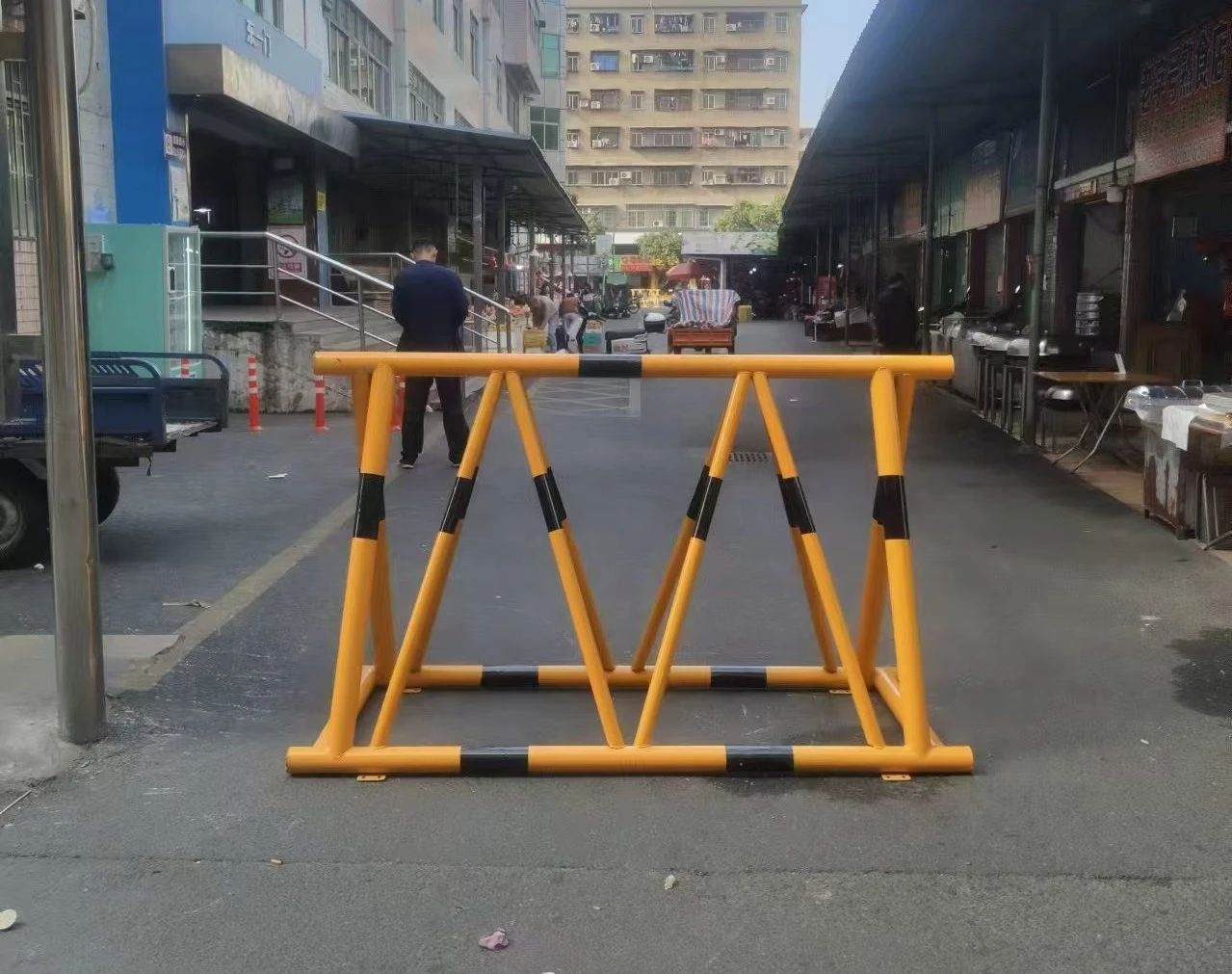 各管理站根據所管轄市場的實際情況,在主要通道和人流密集區域安裝了180條堅固的水管柱,這些水管柱采用優質鍍鋅鋼材制作,設計合理,既能有效阻擋非法車輛的闖入,又確保不妨礙行人的正常通行。同時,在市場入口及關鍵部位配置了50多個移動防撞拒馬,這些移動拒馬具有良好的機動性和防撞性能,可在緊急情況下快速部署,形成堅固有效的防護屏障。