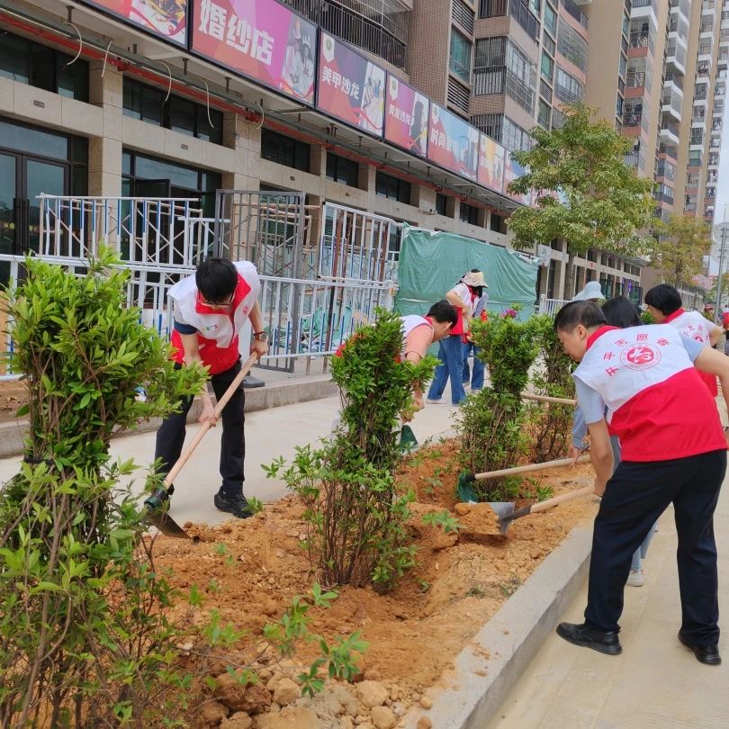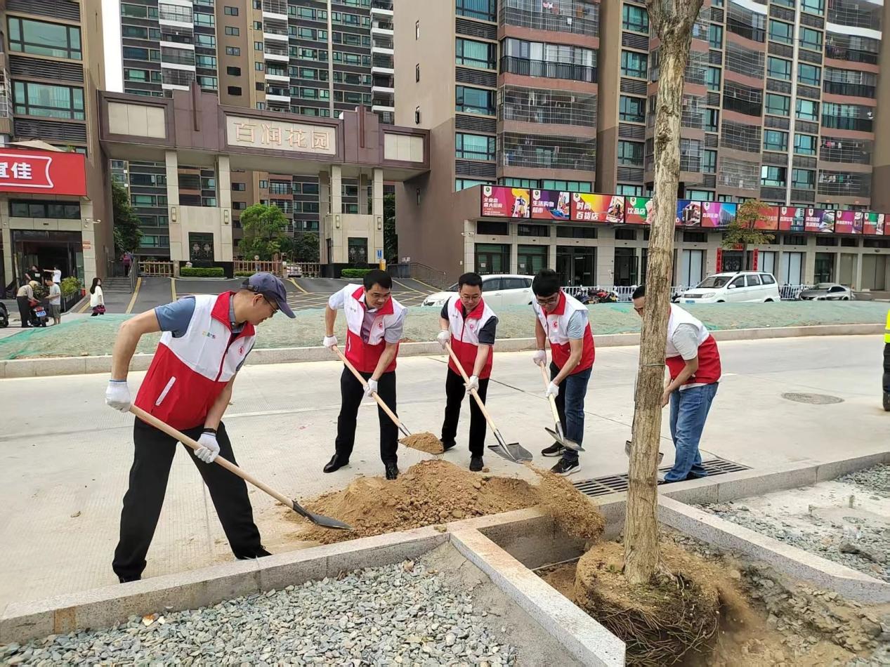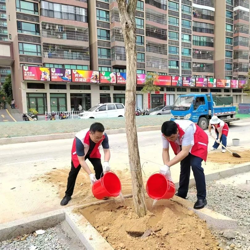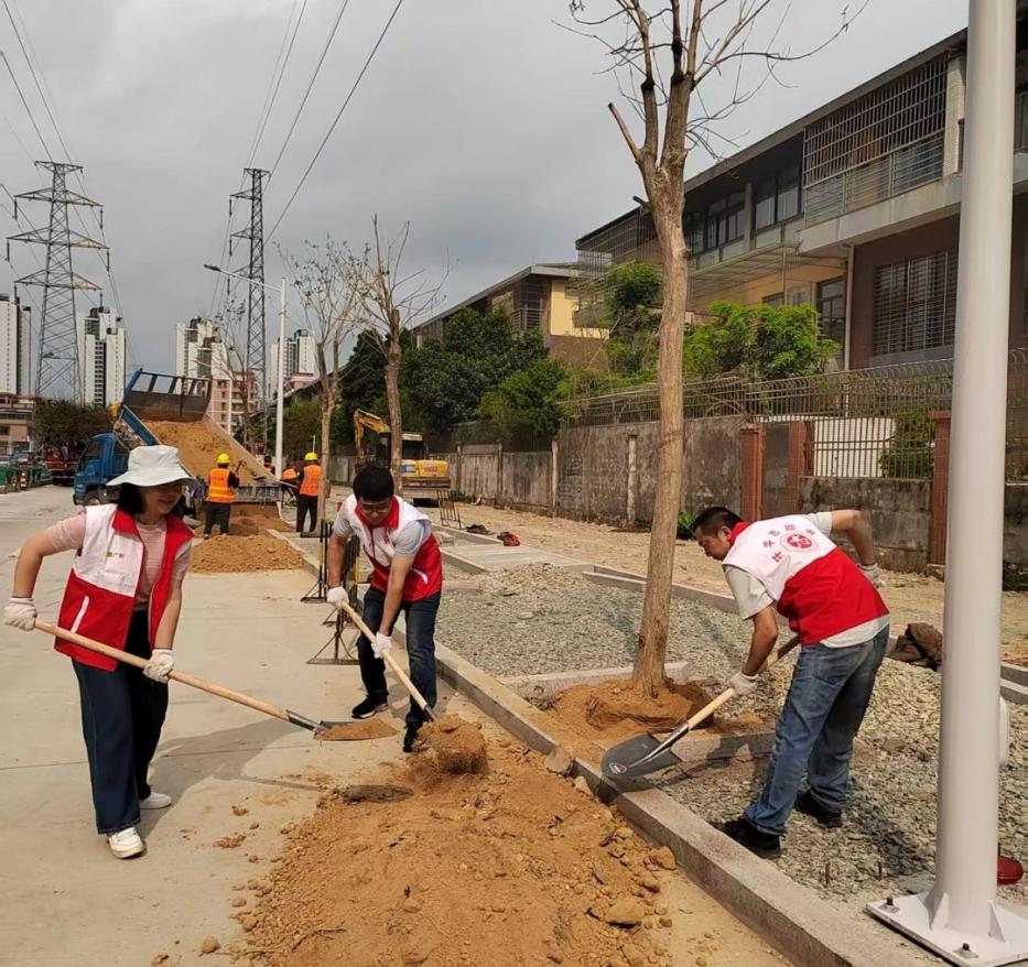 活動現場,20余名黨員志愿者身著紅馬甲,在公控集團黨委書記、董事長伍衛良的帶領下,分組協作、配合默契,揮鍬挖坑、扶正樹苗、培土澆水,每個環節都一絲不茍。經過一番精心細致的栽種作業,新栽種的樹苗整齊排列,在春日暖陽下傲然挺立,為逕頭中路沿線披上了一襲嶄新的綠裝,成為一道亮麗的生態風景線。