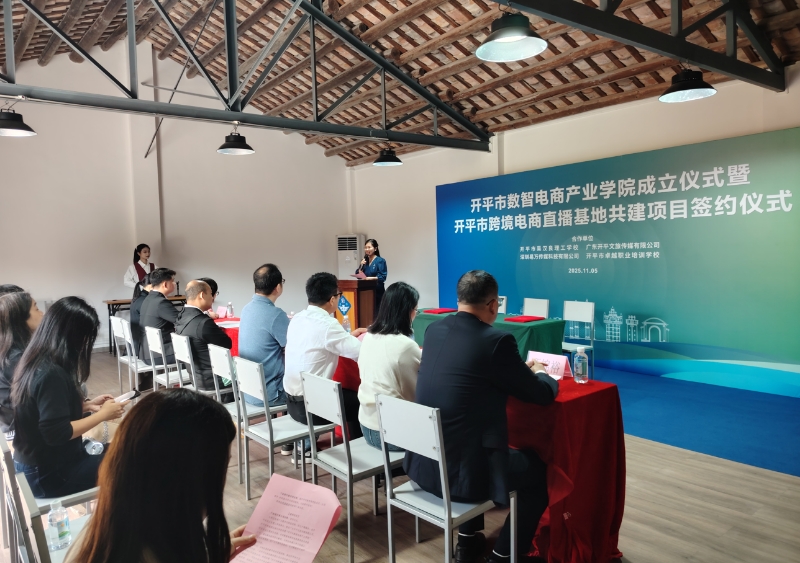 11月5日上午,開平市數(shù)智電商產(chǎn)業(yè)學(xué)院成立儀式暨開平市跨境電商直播基地共建項(xiàng)目簽約儀式在三埠街道荻海埠舉行,標(biāo)志著開平市在深化產(chǎn)教融合、搶抓數(shù)字經(jīng)濟(jì)與跨境電商發(fā)展方面邁出關(guān)鍵一步,為開平市產(chǎn)業(yè)升級與經(jīng)濟(jì)高質(zhì)量發(fā)展注入新動能 儀式上,開平市吳漢良理工學(xué)校、開平市城市建設(shè)發(fā)展集團(tuán)有限公司下屬企業(yè)廣東開平文旅傳媒有限公司、開平市卓越職業(yè)培訓(xùn)學(xué)校三方共同簽訂戰(zhàn)略合作協(xié)議書,并為“開平市數(shù)智電商產(chǎn)業(yè)學(xué)院”揭牌。產(chǎn)業(yè)學(xué)院將深度融合“數(shù)據(jù)”與“智能”,通過校企協(xié)同育人、項(xiàng)目化實(shí)戰(zhàn)教學(xué)等模式,搭建從學(xué)習(xí)到就業(yè)、創(chuàng)業(yè)的快速通道,廣泛開展社會培訓(xùn),致力打造粵西地區(qū)電商人才培養(yǎng)高地。 開平市吳漢良理工學(xué)校校長張國蘭介紹:“這個項(xiàng)目對校企雙方而言是雙贏之舉,該基地是真實(shí)項(xiàng)目運(yùn)營的場所,學(xué)生們能以學(xué)徒身份在這里接觸實(shí)際項(xiàng)目,這對提升他們的技能水平、增進(jìn)對崗位的認(rèn)識都有著顯著的促進(jìn)作用。此外,基地不僅開展學(xué)生的培訓(xùn)工作,還面向社會技能人才提供培訓(xùn)服務(wù),主要致力于服務(wù)本地的中小企業(yè)。如果有中小企業(yè)在這方面存在人才需求,可直接與基地對接,學(xué)校能夠向企業(yè)直接輸送技能人才。” 同時,廣東開平文旅傳媒有限公司與深圳易萬傳媒科技有限公司簽訂《開平市跨境電商直播基地共建項(xiàng)目合作協(xié)議書》,共同啟動“開平市跨境電商直播基地共建項(xiàng)目”,雙方將攜手推動本地跨境電商發(fā)展。該項(xiàng)目以開平市荻海埠片區(qū)物業(yè)為載體,依托開平產(chǎn)業(yè)資源、僑鄉(xiāng)優(yōu)勢與文旅基礎(chǔ),打造集人才培訓(xùn)、直播帶貨、企業(yè)服務(wù)與品牌孵化于一體的區(qū)域性跨境電商示范平臺。項(xiàng)目計(jì)劃每年孵化不少于100名本土電商直播人才,助力開平特色產(chǎn)品通過直播渠道拓展至海內(nèi)外市場,進(jìn)一步推動地方產(chǎn)業(yè)轉(zhuǎn)型與經(jīng)濟(jì)發(fā)展。 開平市數(shù)智電商產(chǎn)業(yè)學(xué)院的成立及跨境電商直播基地共建項(xiàng)目的簽約,有效整合了教育資源與產(chǎn)業(yè)需求,是開平市響應(yīng)國家數(shù)字經(jīng)濟(jì)發(fā)展戰(zhàn)略、推動產(chǎn)業(yè)轉(zhuǎn)型升級的重要舉措,也將為促進(jìn)就業(yè)創(chuàng)業(yè)、賦能區(qū)域經(jīng)濟(jì)高質(zhì)量發(fā)展提供持續(xù)動力。