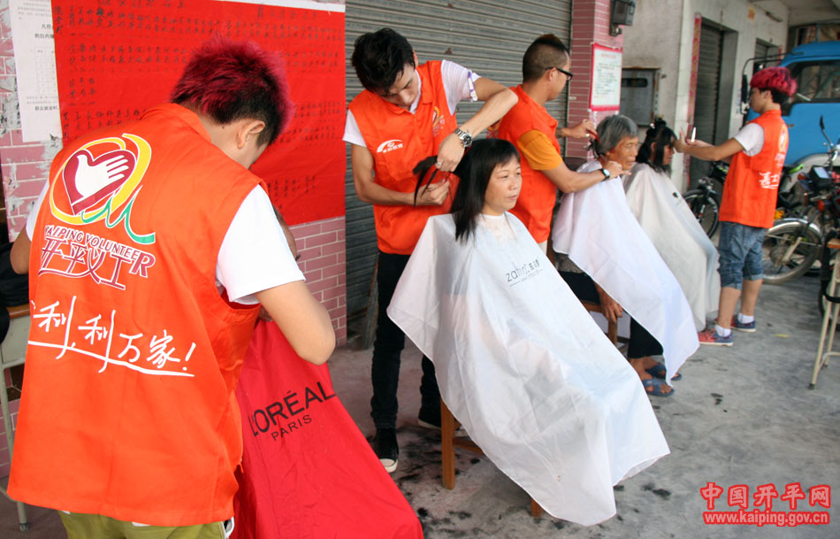 8月26日上午,僑園社區義工站到塘口鎮開展義工活動,在魁草陳氏大樓前門為村民提供義診義剪等服務,將溫情和關愛送至群眾家門口。