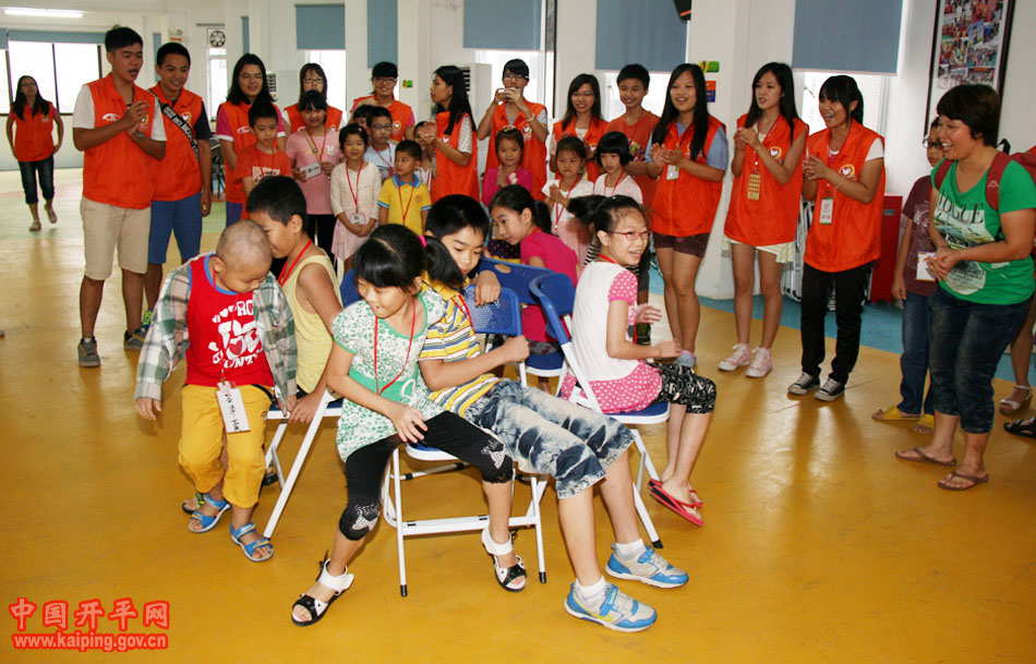 開班儀式上,市義工聯秘書長何彥雄為參加此次青苗成長護衛行動的大學生志愿者頒發證書后,近三十名志愿者與小朋友們結對互相認識,設計隊名、口號和隊形,組織開展“抱抱團”、“搶凳子”等互動游戲。志愿者和小朋友們玩得不亦樂乎,笑聲不絕于耳,一派其樂融融的景象。