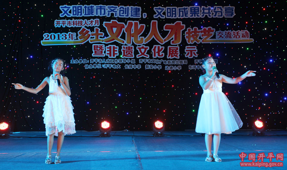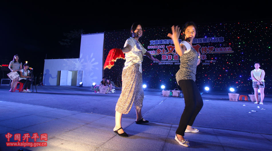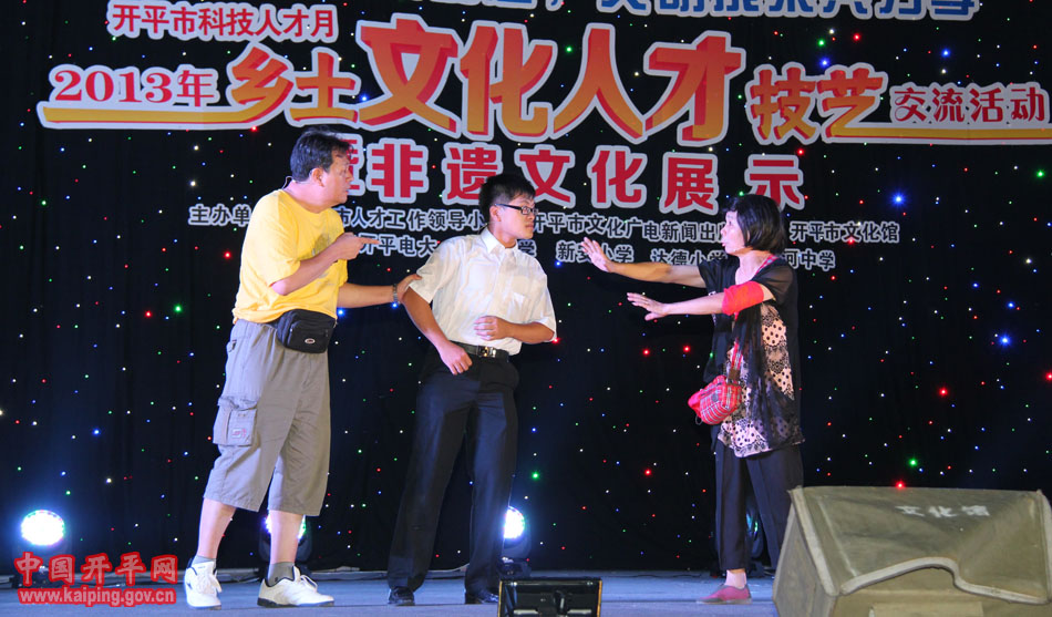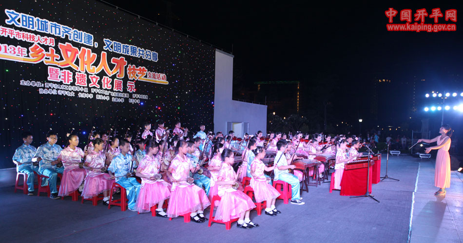 6月30日晚,“開平市科技人才月——2013年鄉土文化人才技藝交流活動暨非遺文化展示”文藝演出在市人民公園中心舞臺上演,來自全市的數十名本土演員給市民呈現了一臺獨具濃郁鄉土氣息的文化盛宴。