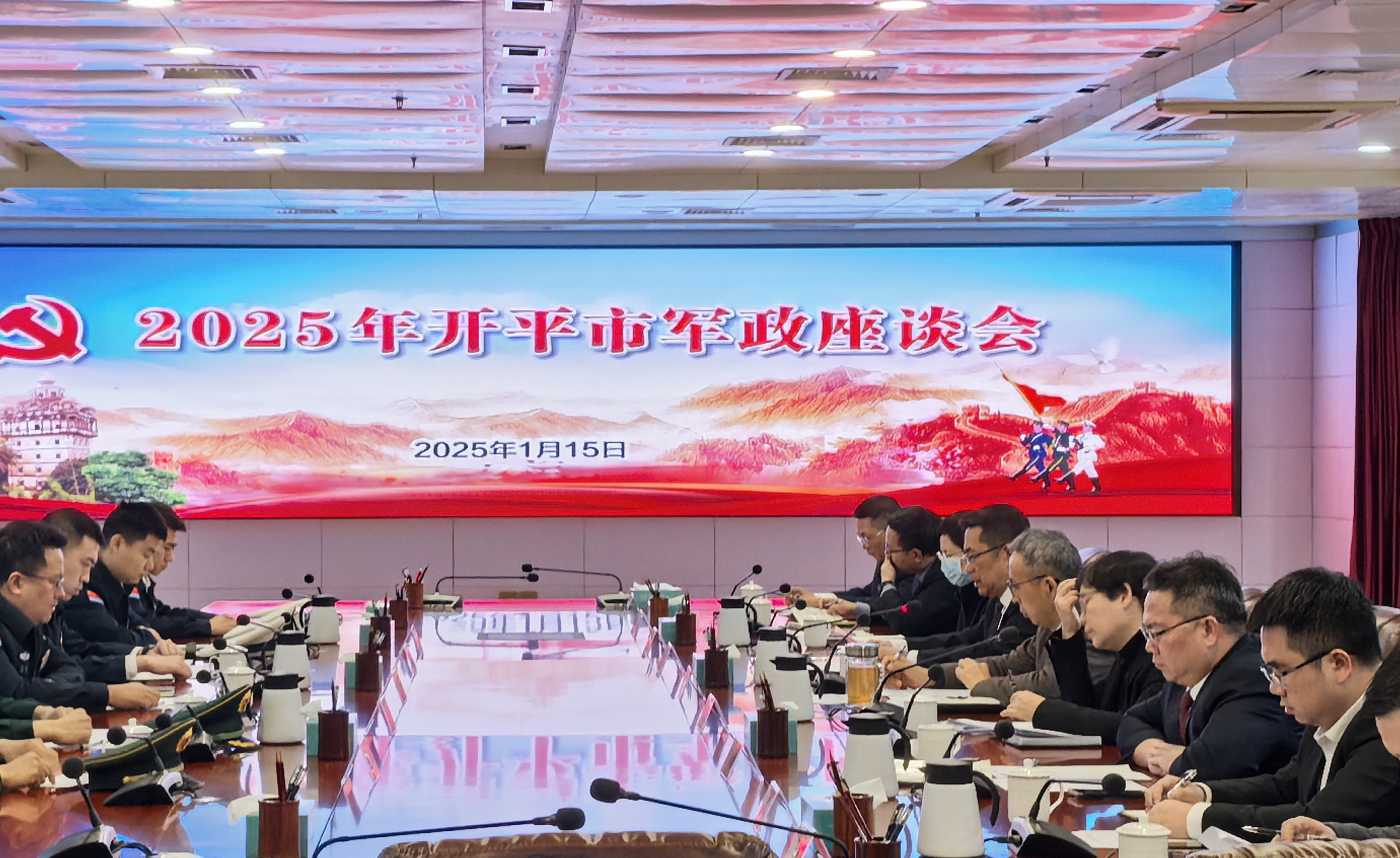 開平市堅持黨建引領雙擁工作,組織召開2025年軍政座談會。1月15日,市委市政府黨政領導與駐地部隊代表齊聚一堂,共敘魚水深情,共商雙擁發展大計。