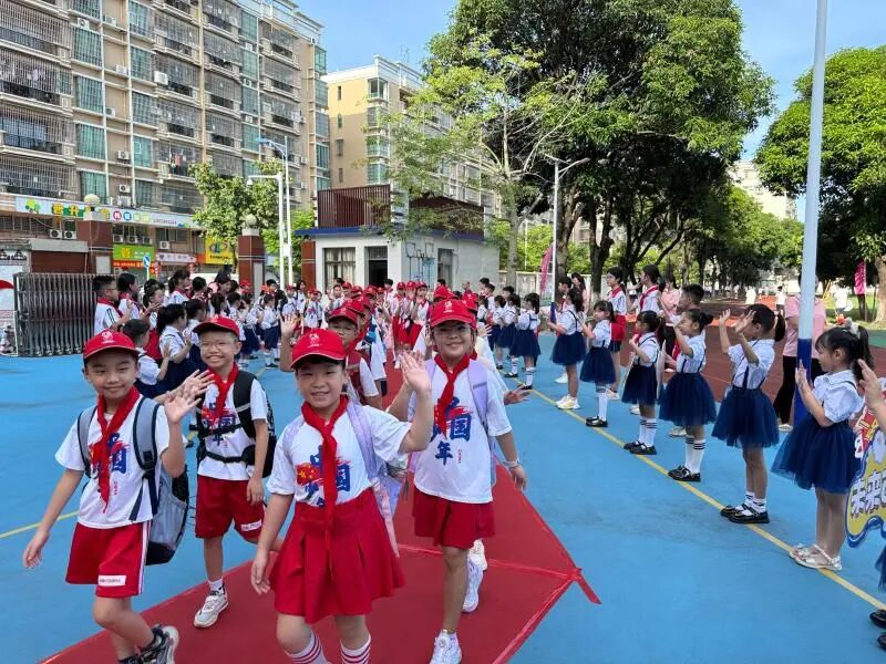 結束了暑熱喧騰的假期 9月1日 開平市約11.25萬名 中小學、幼兒園學生 返校開學 新學期 新開始 沉寂已久的校園 再次被同學們的歡聲笑語喚醒 校園在一聲聲 “早上好”“老師好”中 熱鬧起來 處處洋溢著蓬勃的朝氣與活力 △開學首日,僑園路小學校園洋溢著溫馨與活力的氛圍。開平教育吉祥物“小開”“小蘋”化身迎賓大使,熱情問候每位同學;每位同學入校即獲贈一把寓意吉祥的扇子,滿載美好祝福。 △長沙澄江小學學生們衣著整齊有序回校園。 △朱砂點智、擊鼓鳴志、童心印記……開平市風采實驗學校以富含文化底蘊的入學儀式,為一年級新生開啟求知成長的新征程。 △祥龍學校學生們有序回校園。 △譚宏帙紀念小學秋季開學日溫情滿溢。全體教師在校門口為每一位新生佩戴校徽,這枚徽章既是身份的印記,更是對孩子們未來學習生活的美好寄望。少先隊大隊委則熱情引路,牽手萌新踏入校園,共同開啟一場充滿挑戰與希望的成長之旅。 △開平市梁金山小學校門口熱鬧非凡,醒目威武的醒獅伴隨著喜慶的鼓點歡快靈動地舞動,敲鑼打鼓聲此起彼伏,每一個動作都充滿了活力與熱情,向每一位踏入校園的新生及家長致以最熱烈的歡迎。 △新安小學學生們在學校留影區合影留念,記錄新學期開學瞬間。 △長沙幕村小學禮儀隊迎接學生回校。 新學期 新成長 開學首日 開平市各學校 通過升旗儀式 主題班會等豐富多彩的活動 激勵學生們堅定奮勇前行的方向 努力爭做“四個自信”好少年 △開學第一天,開平市第一中學舉行升旗儀式,并寄語全校學生,要恪守校訓、修身明德、追求真知,成為有擔當、有作為的新時代青年。 △風采實驗中學老師為學生上了生動的開學第一課,引導學生在新學期開好頭、起好步。 △譚宏帙紀念小學開展以“傳承勝利之光,啟航夢想新程”為主題的開學典禮。今年是中國人民抗日戰爭暨世界反法西斯戰爭勝利80周年,在開學典禮上開展愛國主義教育,傳承愛國主義精神,讓學生進一步了解歷史,以史為鏡,自強不息。 每一次啟航 都是在積蓄新的成長 新學期的號角已吹響 一切美好都已蓄勢待發~ 期待開平學子們 在新的學期里乘風破浪 一起向未來,闊步奔前方!