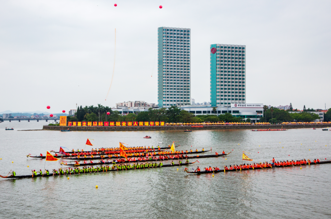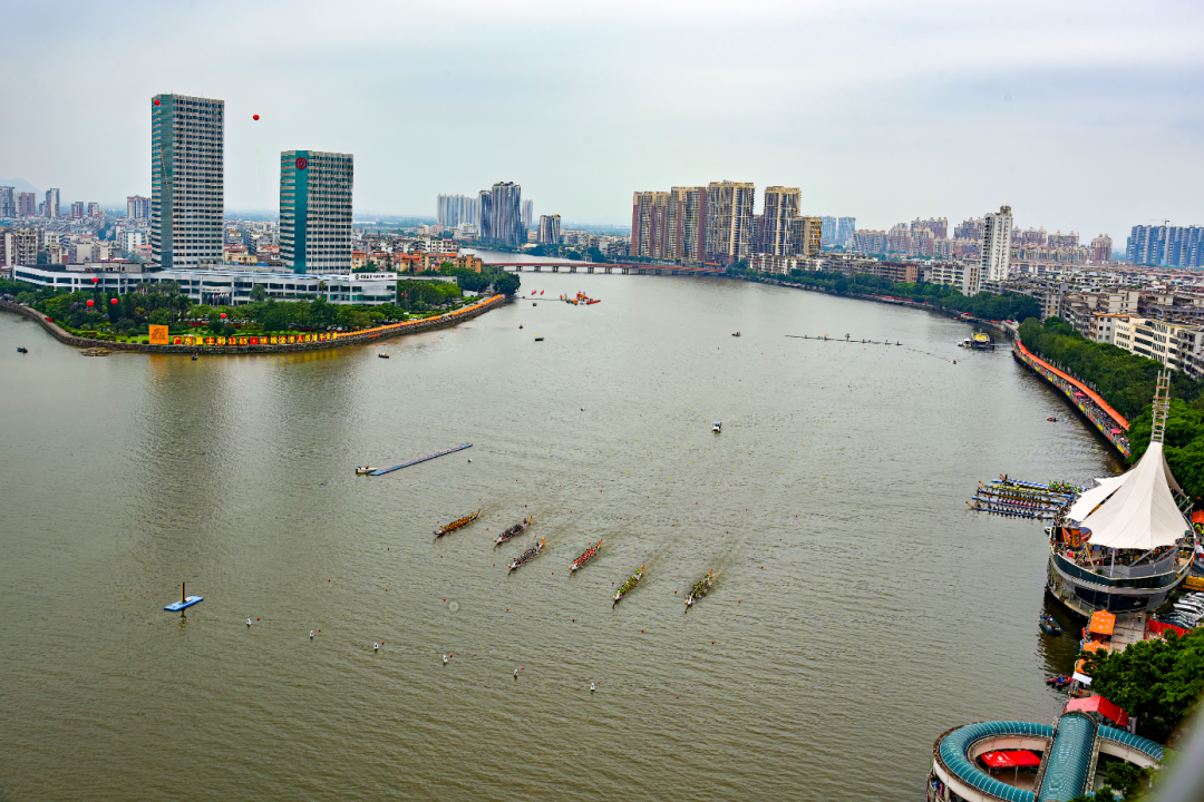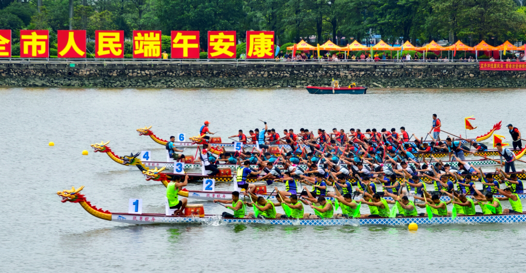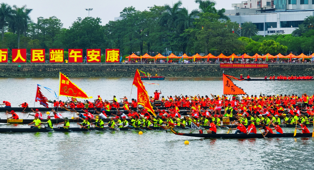 來自國際及粵港澳大灣區36支勁旅齊聚潭江,劈波斬浪;數萬名觀眾齊聚兩岸,搖旗吶喊,共同感受端午傳統競技的魅力。