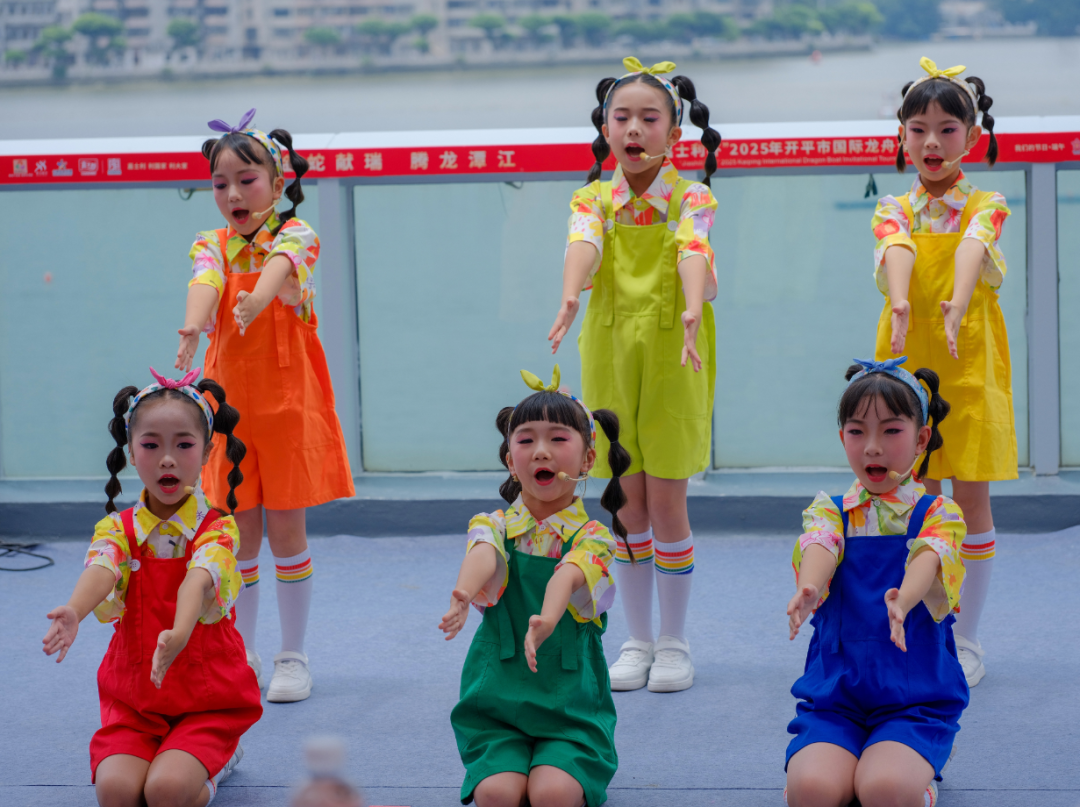 賽事期間,精彩紛呈的配套表演也為節日增添了濃厚的文化韻味。滑翔傘在碧空劃過瀟灑的弧線,傳統龍舟表演賽展現了古老龍舟的別樣風采;馬岡中心小學學生們帶來的《錦繡獅武》虎虎生威,舞出了少年兒童的朝氣;梁金山小學傾情演繹的粵曲《僑鄉童韻》婉轉動聽,將僑鄉故事融入曲韻悠揚。這些文化展示,既是開平深厚文化底蘊的體現,也成為了市民和游客共享的文化大餐。