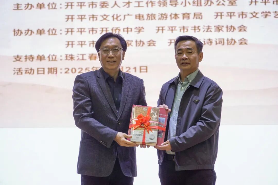 儀式過后,市文聯向首批組建工作室的學校贈予《微光志——解碼國之重器江門地下中微子實驗》《流逝與永恒》《鄉圖》《世遺明珠 大美開平》等書籍。這些書籍兼具科學人文內涵與僑鄉文化特色,為校園補充了優質文藝教育資源,助力提升學生人文素養。