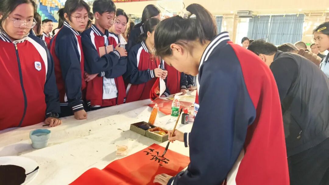課堂結束后,開平市書法家協會、美術家協會等專業老師現場揮毫,為學生們呈現了一場“水墨交融”的藝術盛宴。學生們紛紛圍在老師身旁,近距離觀摩墨寶創作過程,感受傳統藝術的獨特魅力。