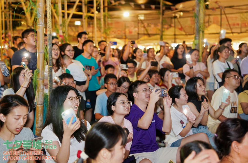 本次活動徹底打破了傳統節慶活動的舉辦模式。承辦方IE公社作為一個匯聚本土及外來創客青年的平臺,在此次“七夕等墟”活動中,從策劃、設計到攤位招募、現場執行,均由青年團隊一手包辦。活動現場,阿曳、哈吉他(haha)等音樂人,以及LazyLady雷技雷帝樂隊、噪樂時空樂團等特色樂隊輪番獻藝,通過民謠、電子、搖滾等多種音樂形式與觀眾熱烈互動。歌聲與光影完美交融,音符點亮夏日夜晚,構筑起一座連接古今、溝通你我的音樂"鵲橋",贏得現場觀眾的熱烈掌聲。