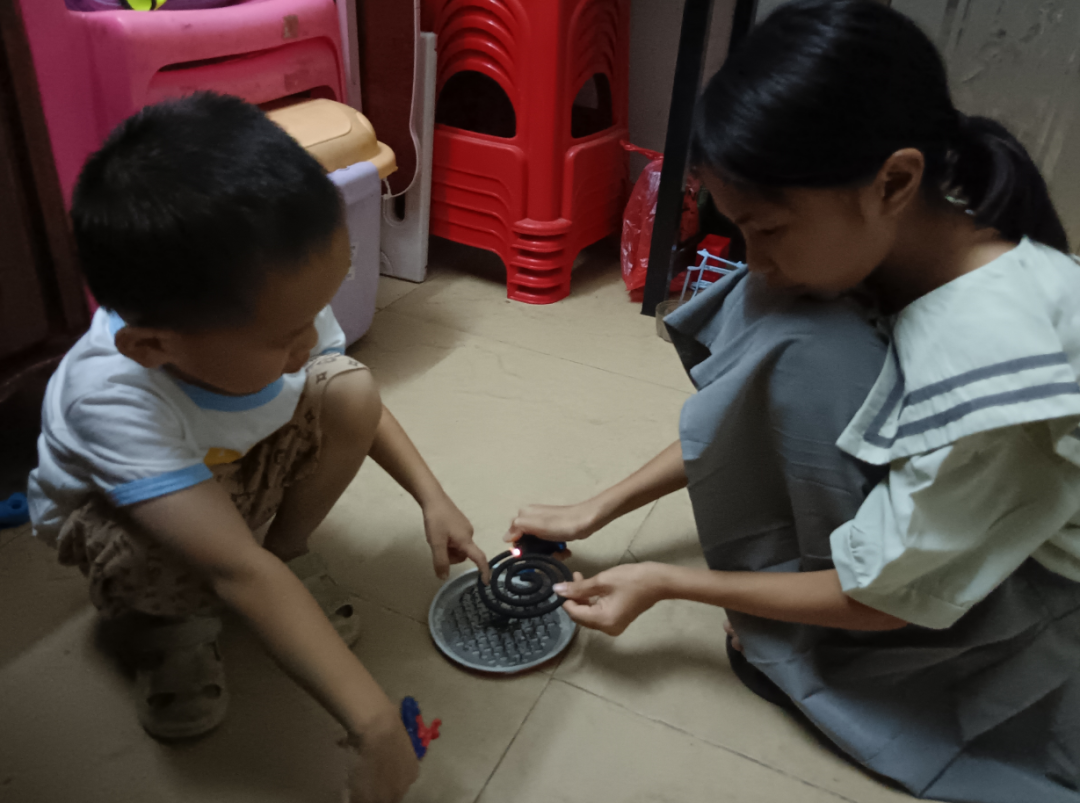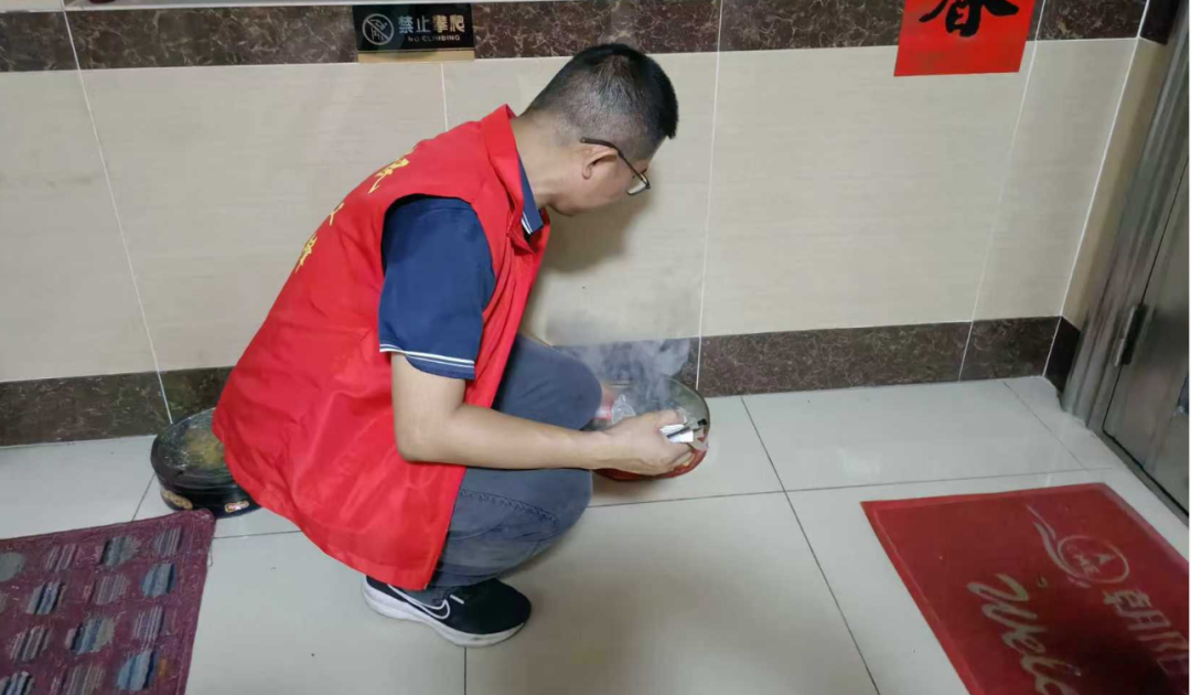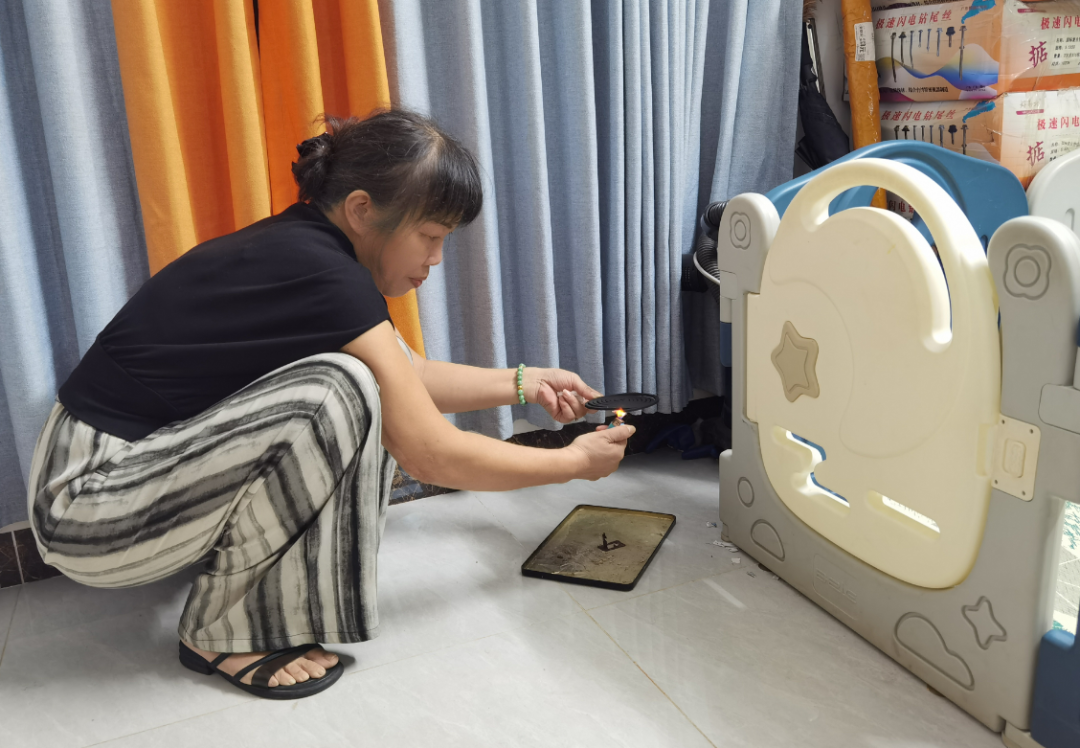除了進行戶外消殺和清理積水外,室內滅蚊工作也同步展開。為確保滅蚊效果,市民和工作人員在各場所準時點燃滅蚊片,按照指引放置滅蚊香后離開室內,讓藥物充分發揮作用。同時,市民還主動點起蚊香,達到雙重滅蚊效果。