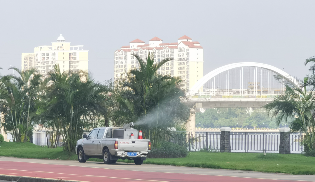 10月16日晚上,江門市發布全民動員通告,自即日起至10月底,在全市范圍內開展以防蚊滅蚊為核心、以清理孳生地為重點,為期兩周的愛國衛生運動專項行動,重點推進“伊蚊孳生地清理”工作。開平市迅速響應,于翌日(10月17日)清晨,投入智能消殺車、無人機等“黑科技”,并結合人工精細化作業,開展愛國衛生運動專項行動。