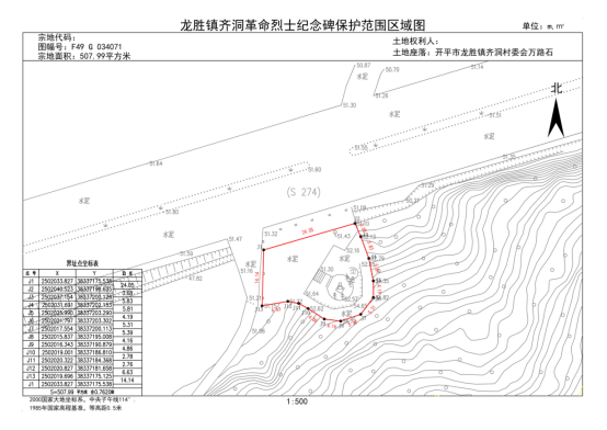 保護范圍:保護紅線往外延伸5米,紅線內面積507.99平方米。