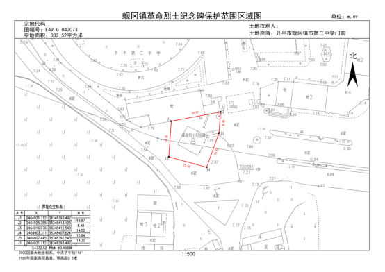 保護范圍:保護紅線往外延伸5米,紅線內面積332.52平方米(現有建筑物保持原狀)