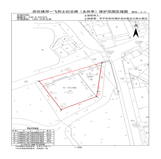 保護范圍:保護紅線往外延伸5米,紅線內面積1200.25平方米。