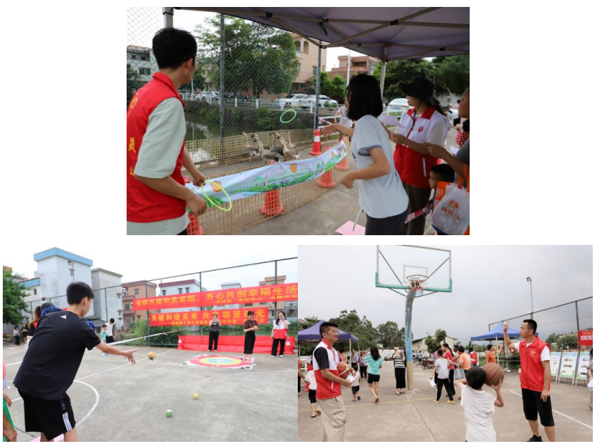 “共建和諧關系,共享鄰里時光”。下灣村和城西村緊抓“村村共建”機遇,合力開展運動會,通過互幫互促、共建共享,進一步加深兩村村民之間的聯系,締結和諧的鄰里情誼。本次運動會設置了趣味投籃、擲沙包和套優品三個關卡,活動以“一通關一印花”形式打卡游戲關卡,印花達到相應數量可以獲取套優品贏馬岡鵝、潭碧冬瓜、粵師傅調味品等“大獎”的機會。村民們踴躍報名,鉚足了勁頭爭取勝利。圍觀村民們紛紛化身教練在線傳授選手通關秘訣,盡顯睦鄰友善的鄰里價值觀。