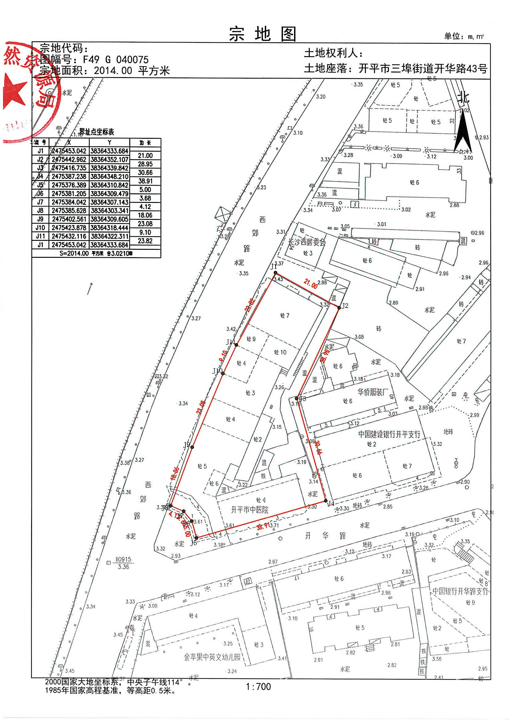坐落在三埠長沙開華路(現編門牌:開平市三埠街道開華路43號)[開府國用(1988)第000913號]的土地使用權,土地面積2014平方米。用地單位開平市中醫院現申請辦理不動產變更登記。若對該用地界線范圍內的用地或地上建筑物權屬有異議者,自公告之日起15個工作日內向開平市自然資源局三埠自然資源所書面提出意見。如無異議,公告期滿即給該單位辦理不動產登記有關手續。用地界線詳見附圖。