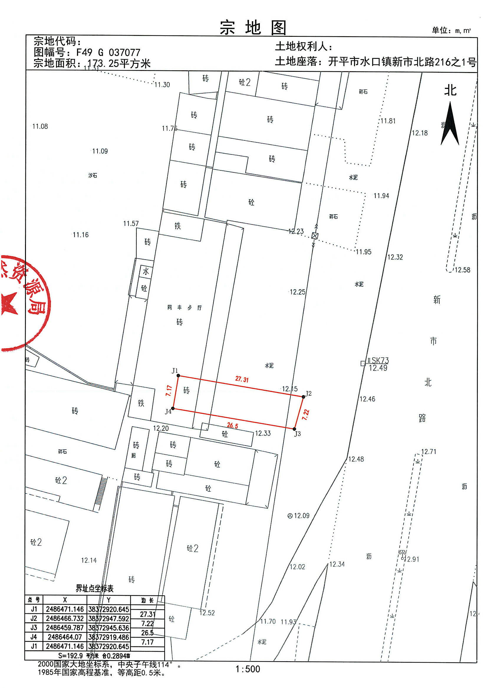 坐落在水口鎮(zhèn)新市北路紅羅崗(現(xiàn)編門牌:開平市水口鎮(zhèn)新市北路216號之1)[開府國用(1993)第817109號]的土地使用權(quán),土地面積192.9平方米。用地單位譚溢榮現(xiàn)申請辦理不動產(chǎn)變更登記。若對該用地界線范圍內(nèi)的用地或地上建筑物權(quán)屬有異議者,自公告之日起15個工作日內(nèi)向開平市自然資源局水口自然資源所書面提出意見。如無異議,公告期滿即給該單位辦理不動產(chǎn)登記有關(guān)手續(xù)。用地界線詳見附圖。