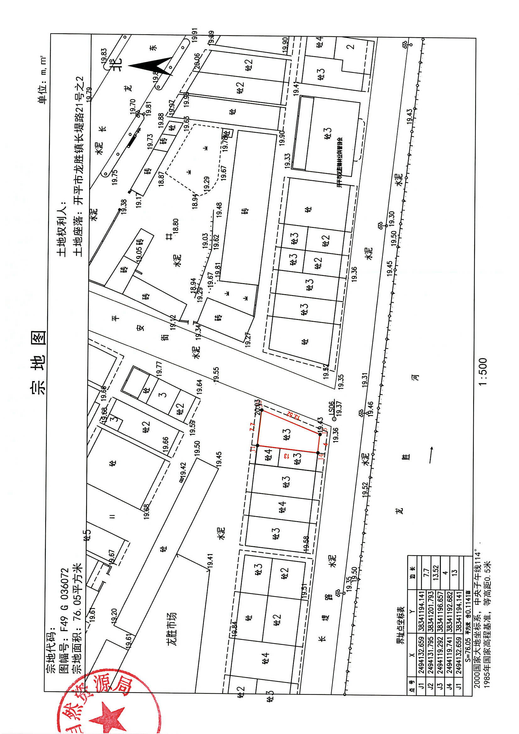 坐落在開(kāi)平市龍勝圩長(zhǎng)堤路21號(hào)-2(現(xiàn)編門(mén)牌:開(kāi)平市龍勝鎮(zhèn)長(zhǎng)堤路21號(hào)之2)[開(kāi)府國(guó)用(1998)第01047號(hào)]的土地使用權(quán),原土地面積77.5平方米,現(xiàn)重新測(cè)繪后土地面積76.05平方米。用地單位馮錫權(quán)現(xiàn)申請(qǐng)辦理不動(dòng)產(chǎn)變更登記。若對(duì)該用地界線范圍內(nèi)的用地或地上建筑物權(quán)屬有異議者,自公告之日起15個(gè)工作日內(nèi)向開(kāi)平市自然資源局龍勝自然資源所書(shū)面提出意見(jiàn)。如無(wú)異議,公告期滿即給該單位辦理不動(dòng)產(chǎn)登記有關(guān)手續(xù)。用地界線詳見(jiàn)附圖。