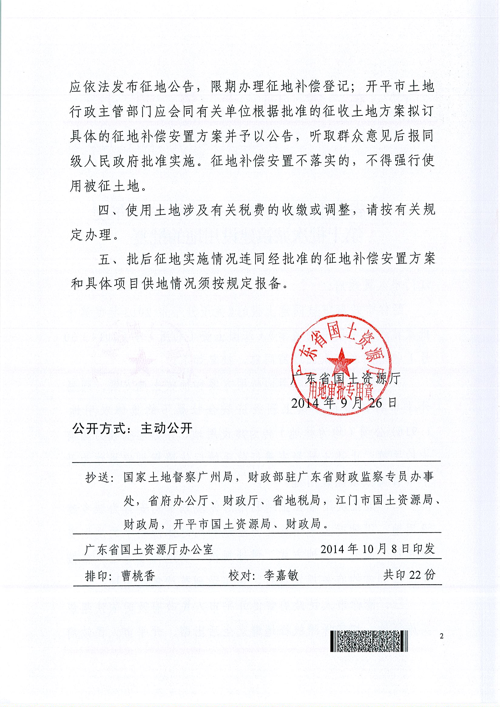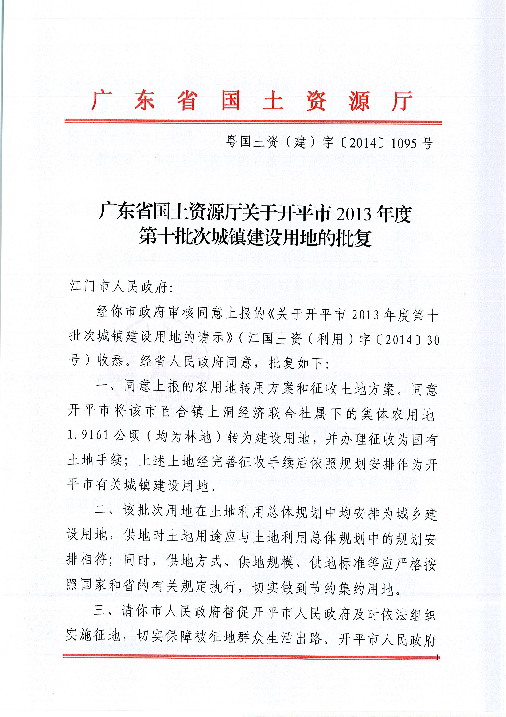 開平市2013年度第十批次城鎮(zhèn)建設(shè)用地的批復(fù)