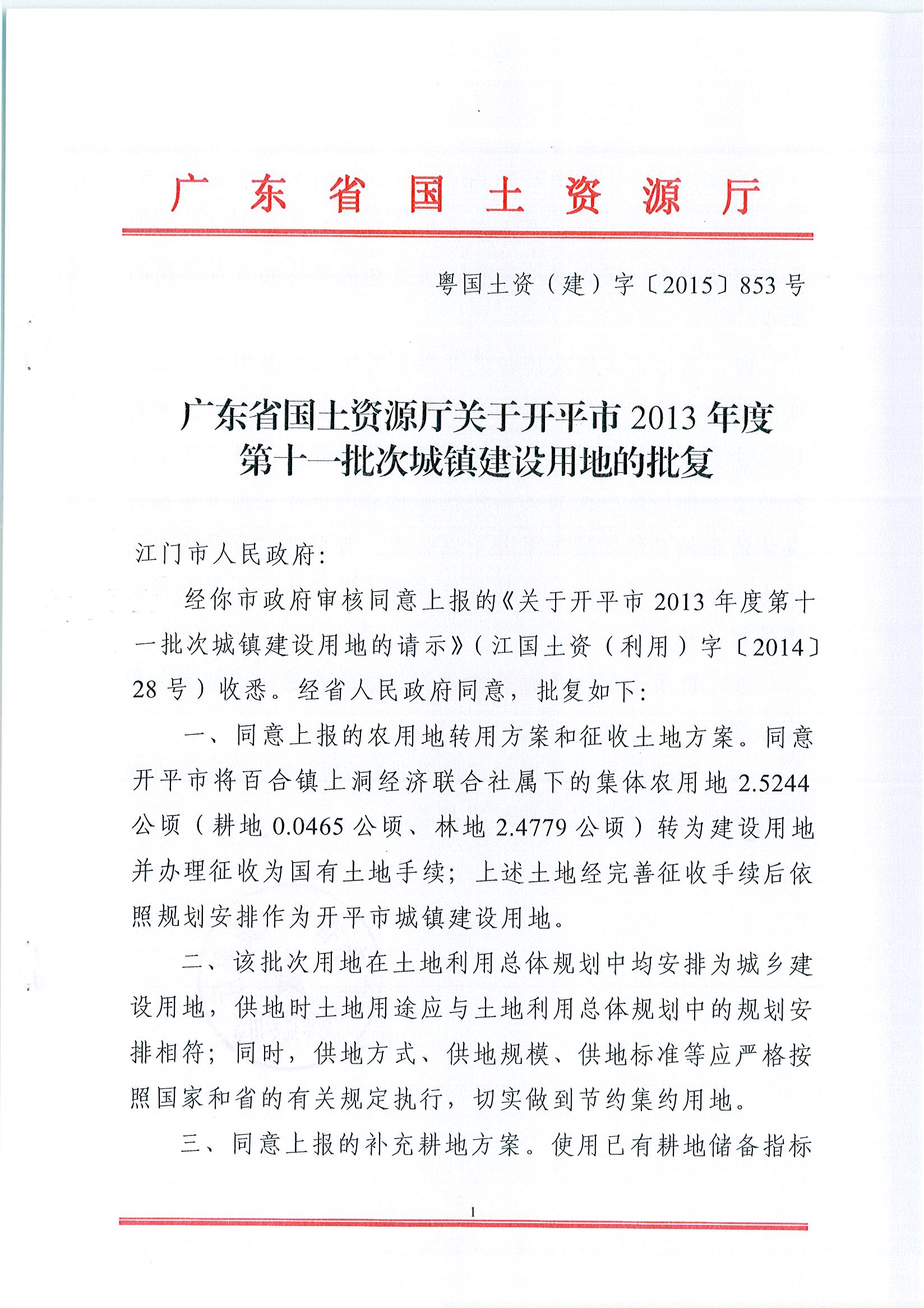 開平市2013年度第十一批次城鎮建設用地的批復