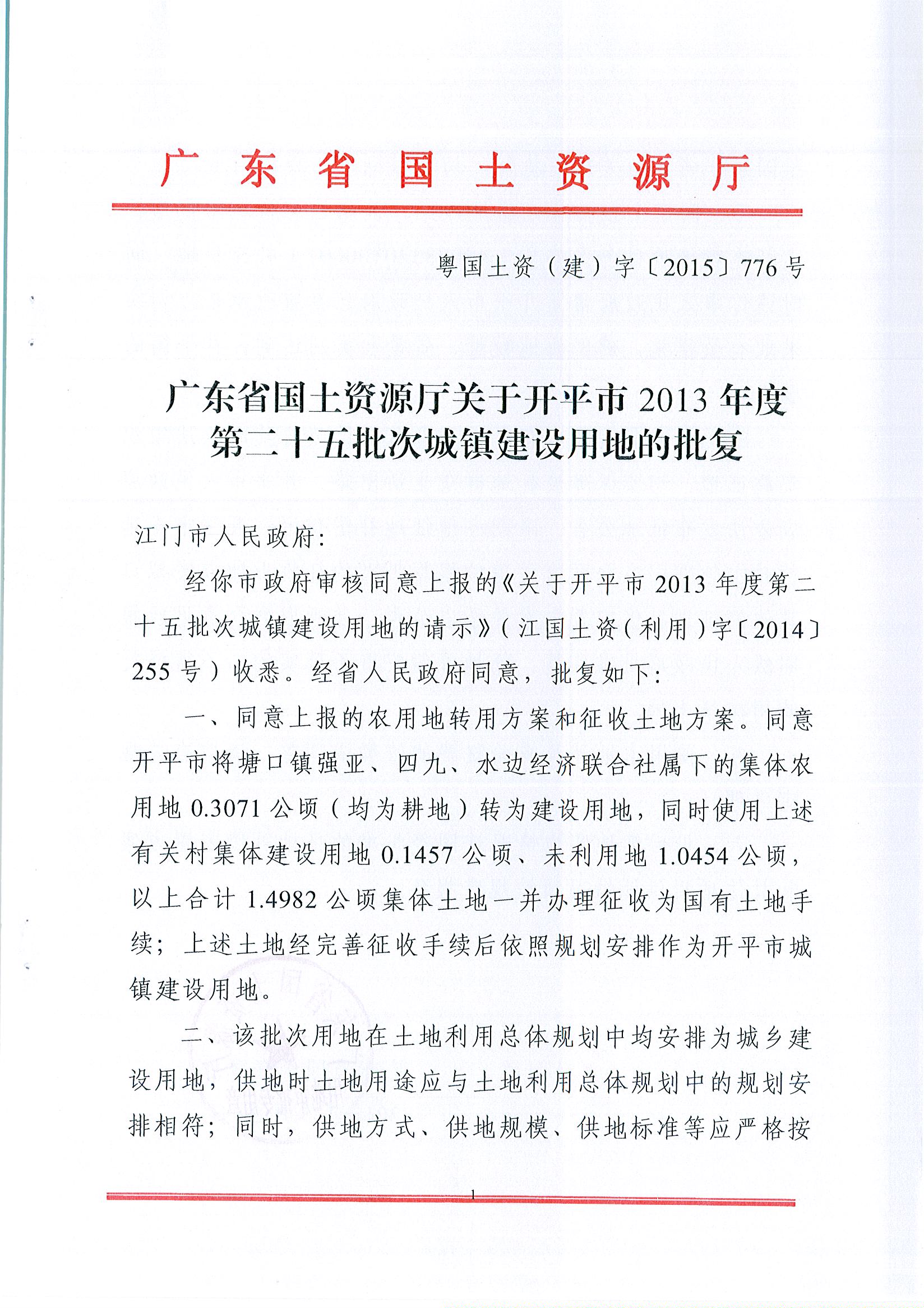 開平市2013年度第二十五批次城鎮建設用地的批復